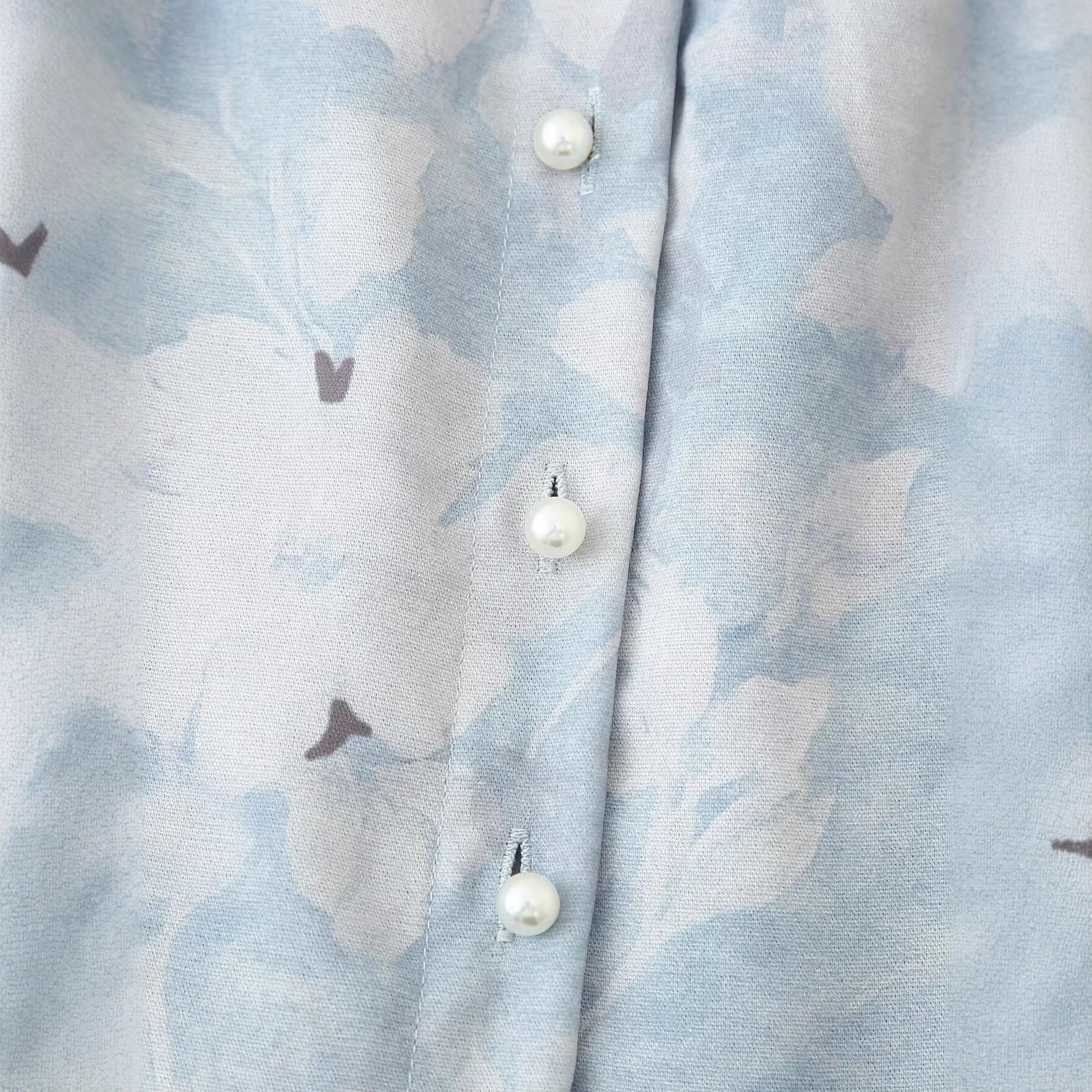 Pearl Button, Floral Pattern, Pleats, Flowers, Waist shaping, V-neck
