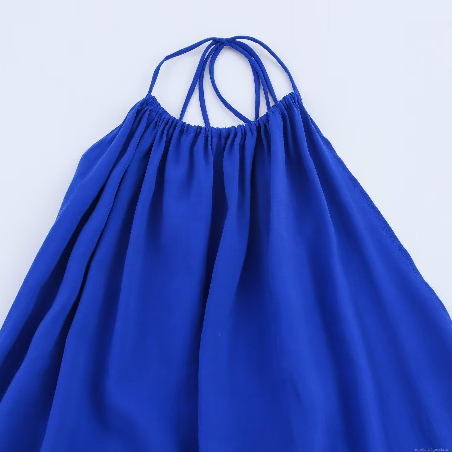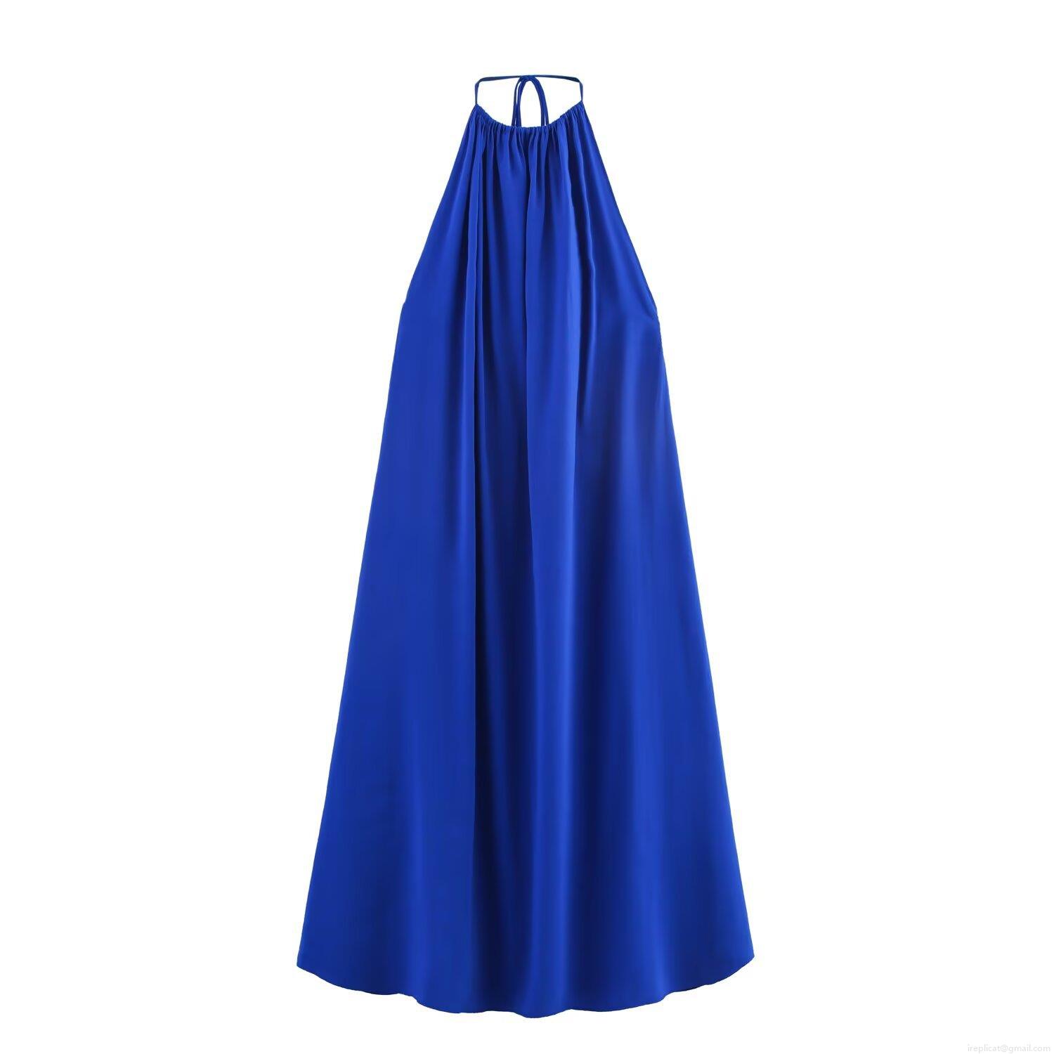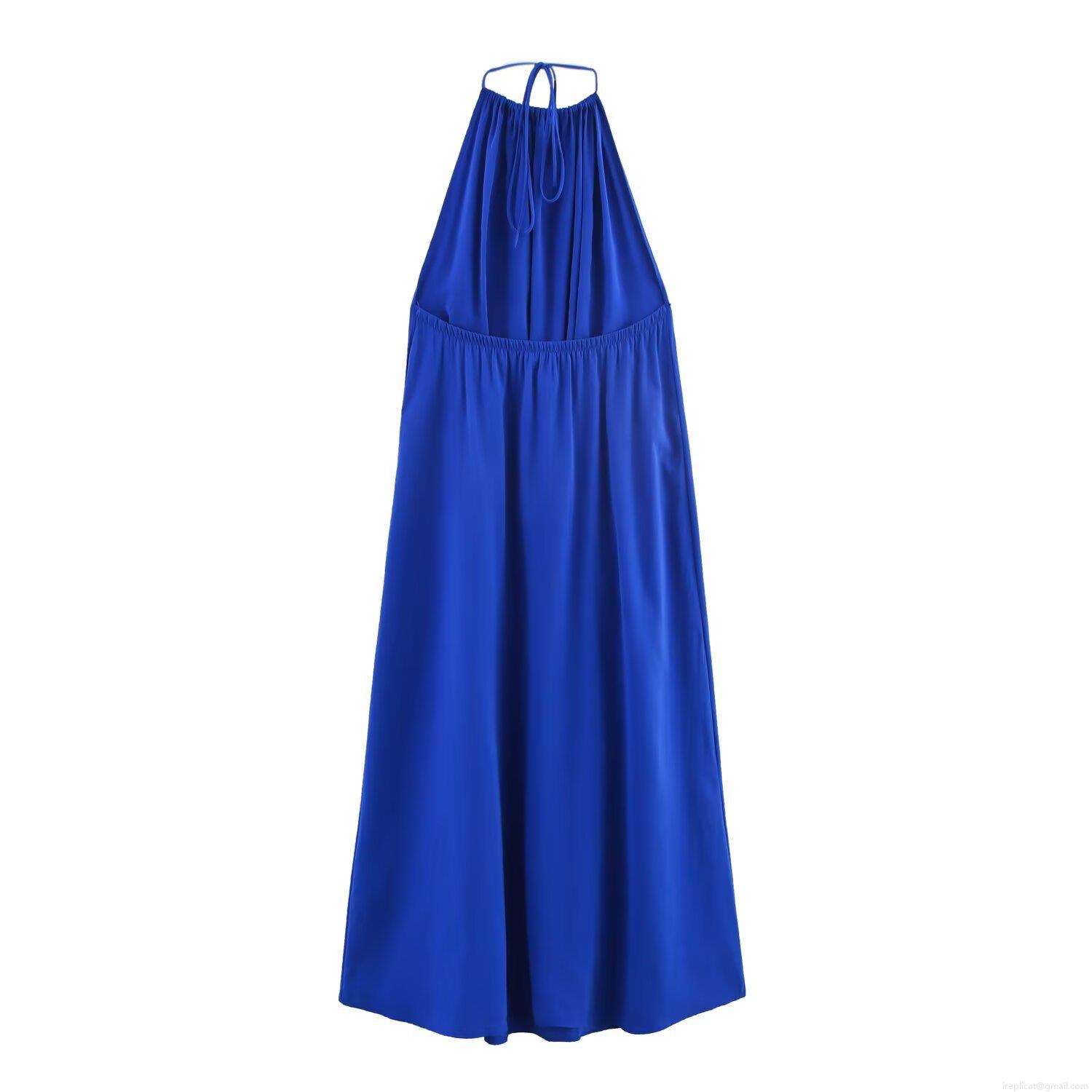 • Women's Elegant Halter Neck Backless Midi Dress Sleeveless Pleated A-Line Polyester Royal Blue Party Wedding Guest Summer Dress For Ladies
