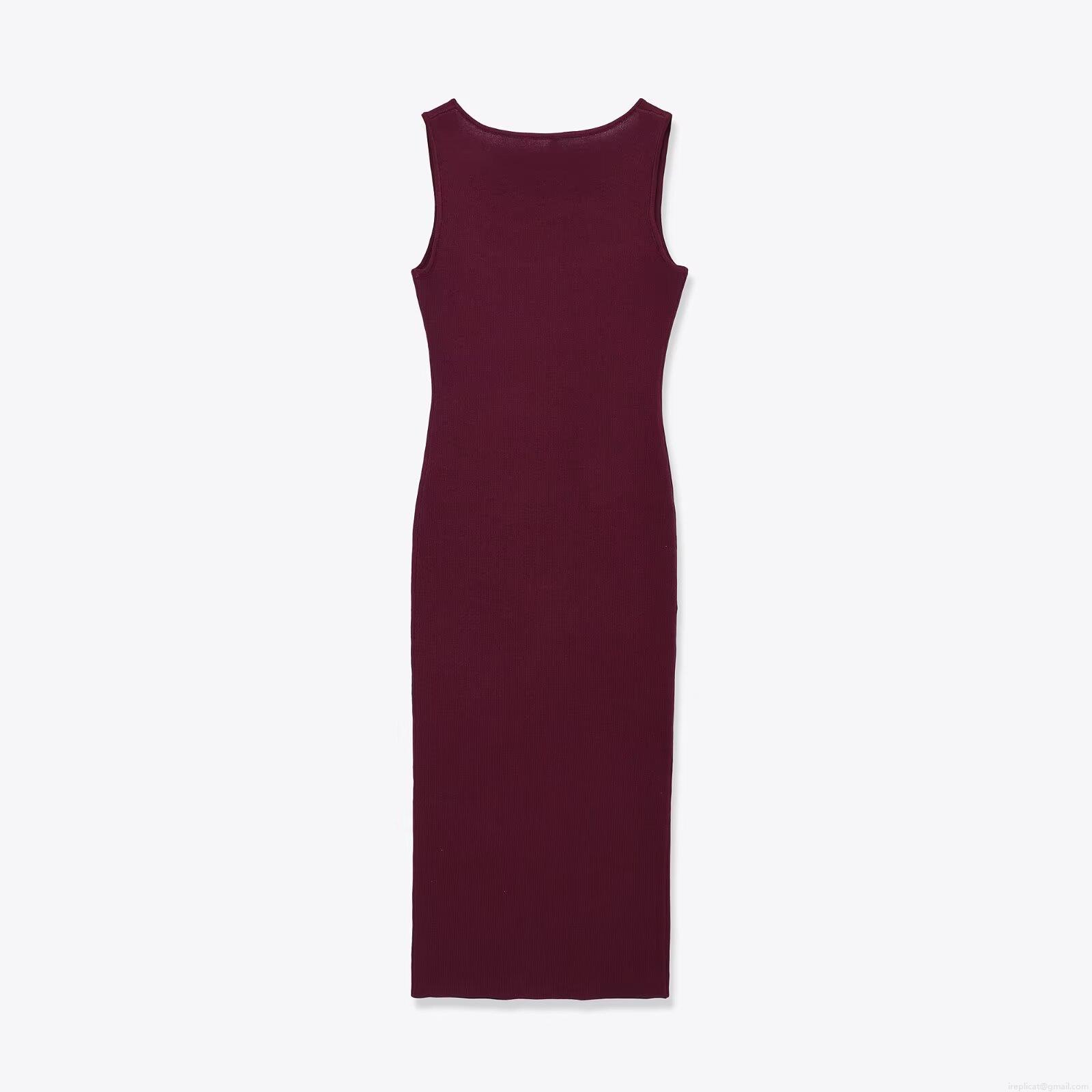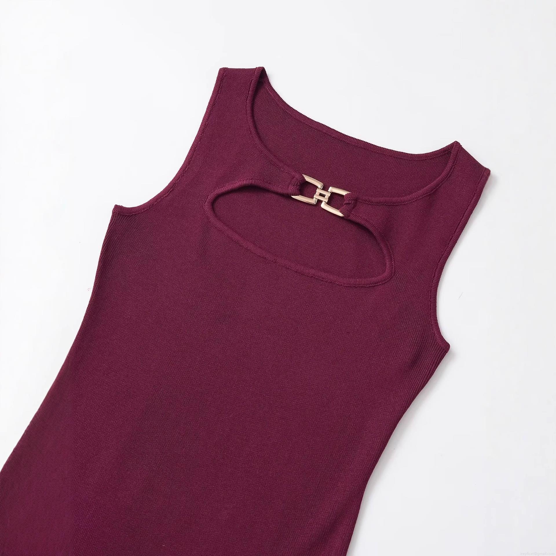 • Women's Elegant Hollow Out Sleeveless Knit Midi Dress With Metal Buckle Slim Fit Ribbed Stretch Polyester Long Dress For Party Banquet Celebrity Style