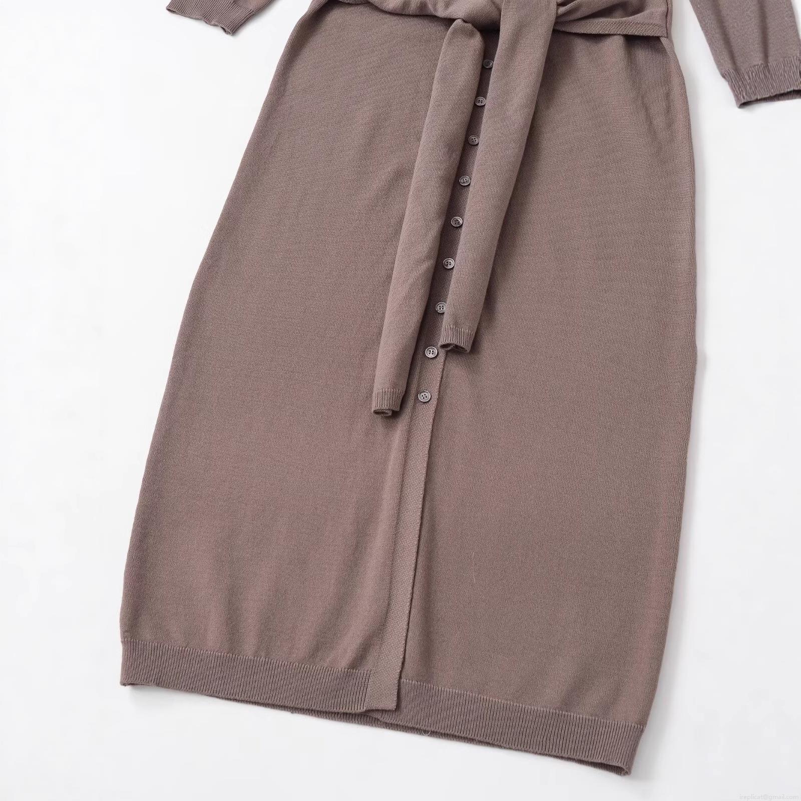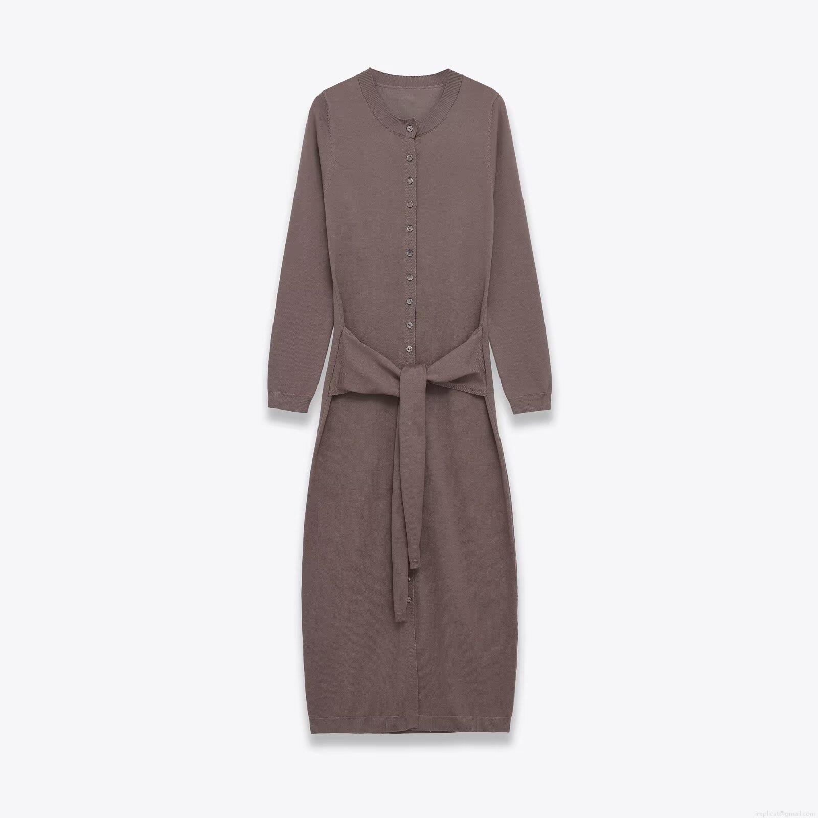 • Women's Elegant Knitted Midi Dress Round Neck Long Sleeve Single-Breasted Sweater Dress with Belt Solid Color Slim Fit Cardigan Dress for Office Party Ladies