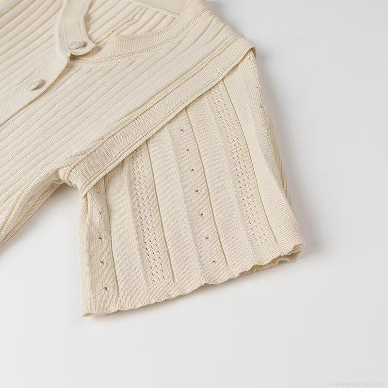 Solid Color, Splice, Color Blocking, Hollow Out, Ribbed, Single-breasted