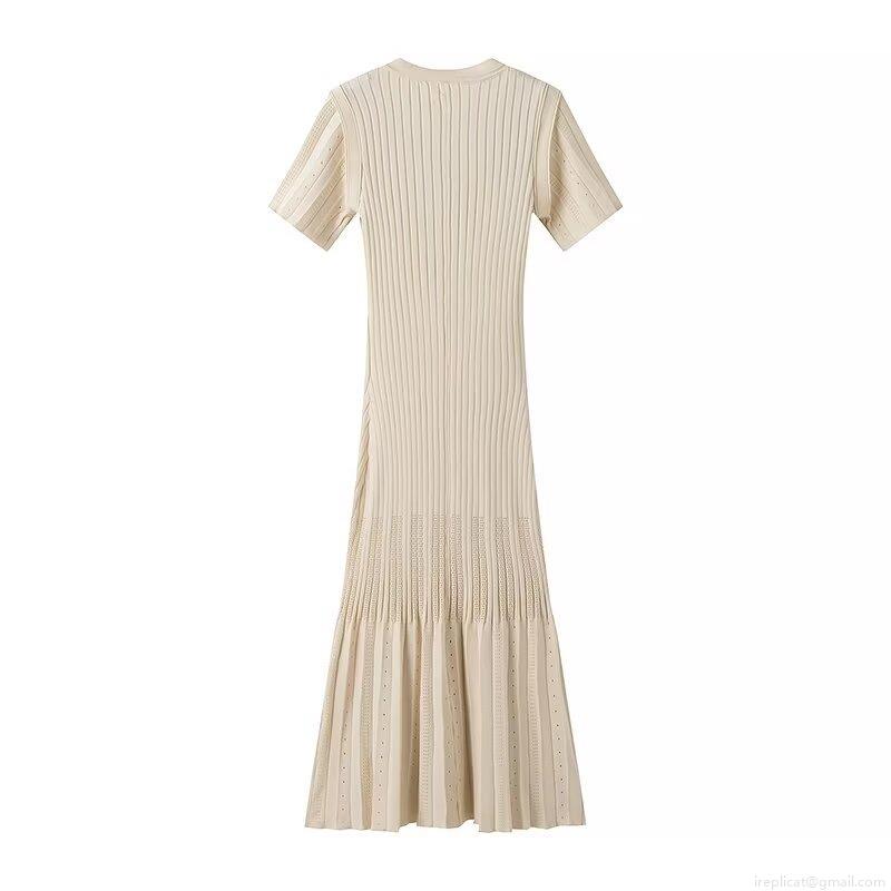 • Women's Elegant Knitted Midi Dress Short Sleeve Round Neck Single-Breasted Ribbed Knit Button Down A-Line Dress Slim Fit Casual Daily Office Wear Simple Solid Color Contrast Splicing Knitwear Dress