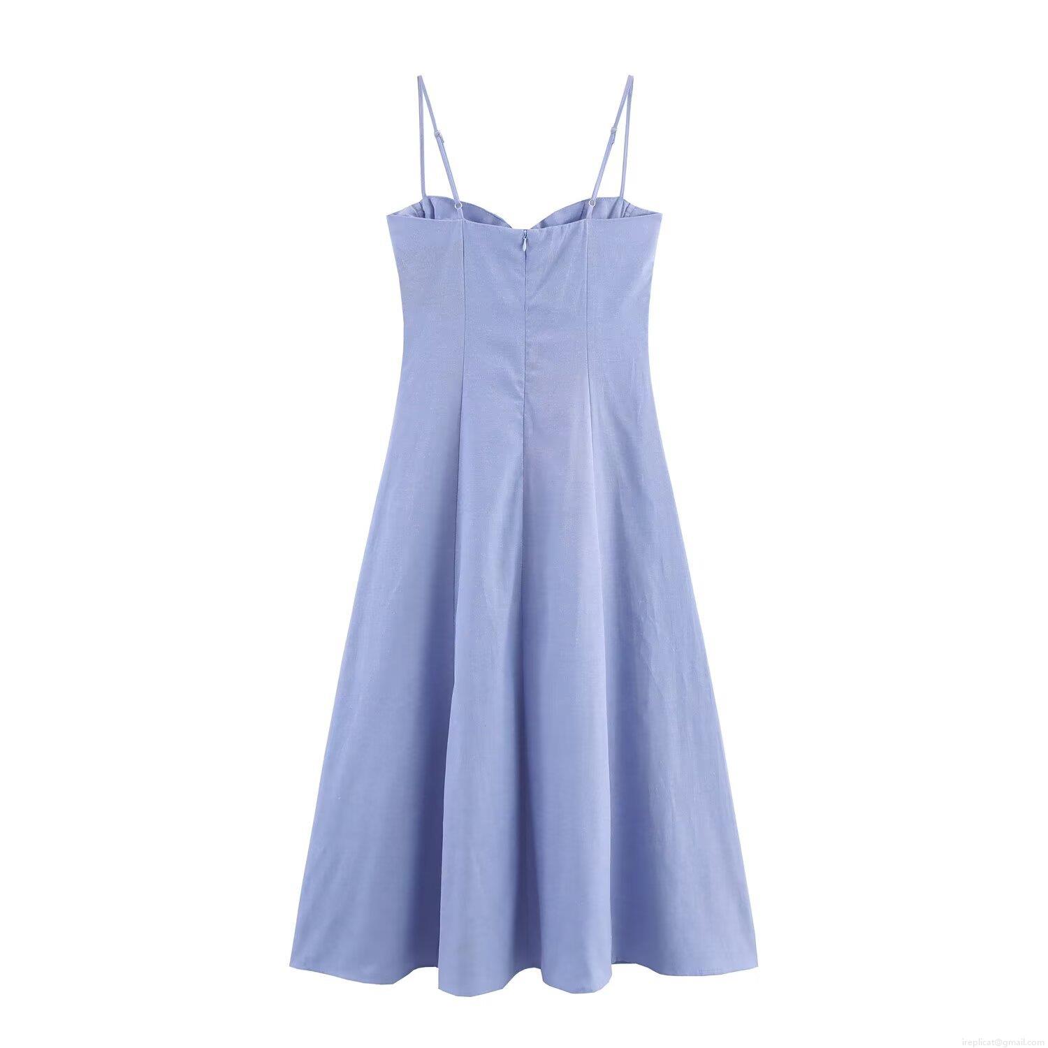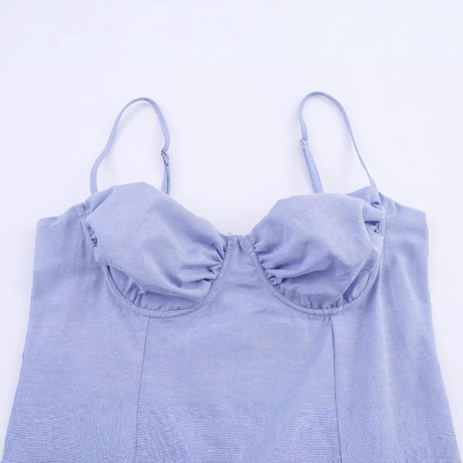 • Women's Elegant Lavender Cami Midi Dress With Pleated Bustier And Side Slit Sexy Polyester Slim Fit Slip Dress For Party Dating Women Clothing