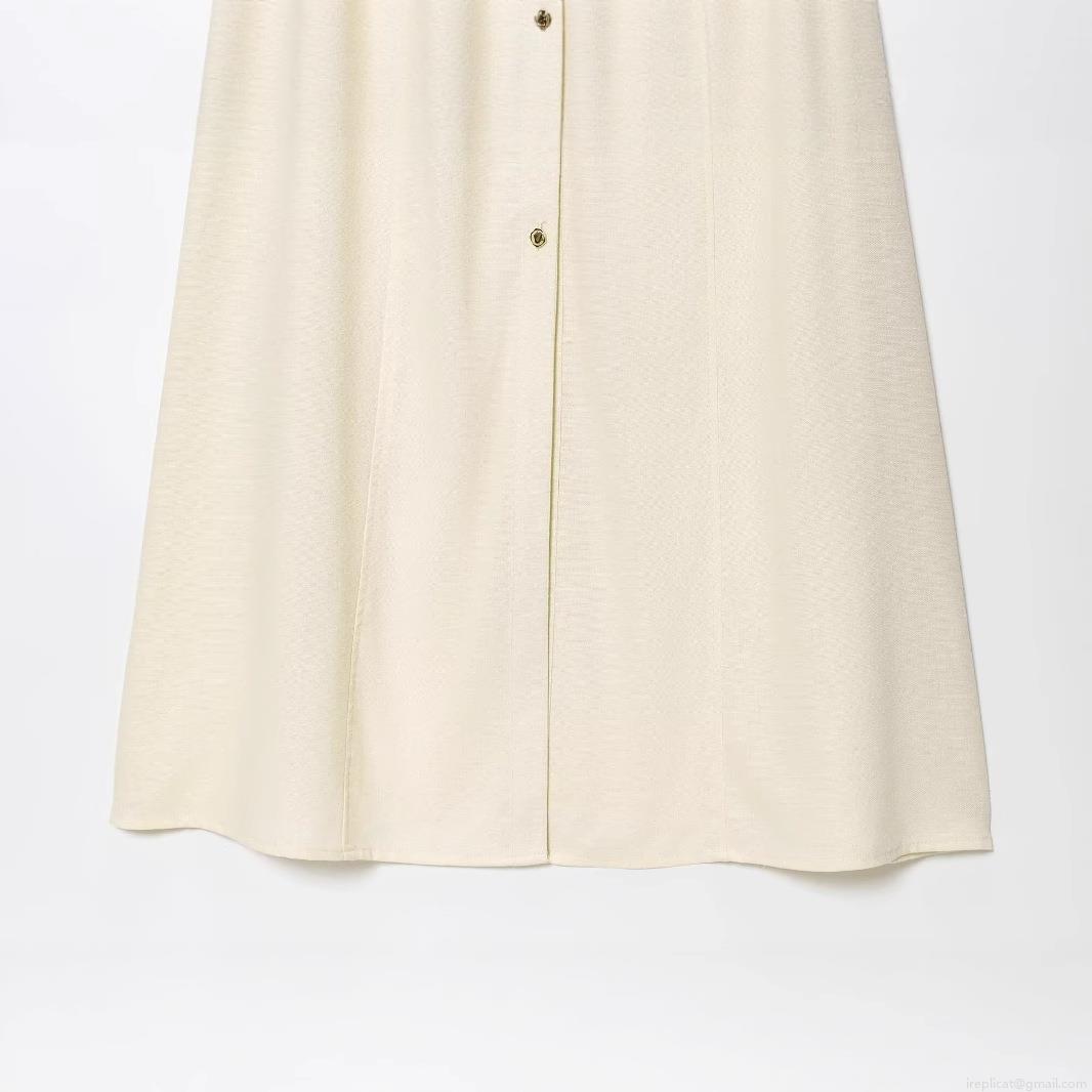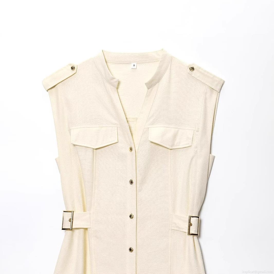 • Women's Elegant Linen Cotton Sleeveless Midi Dress With Belt Slim Fit Stand Collar Button Down Safari Style Summer Dress For Office Lady
