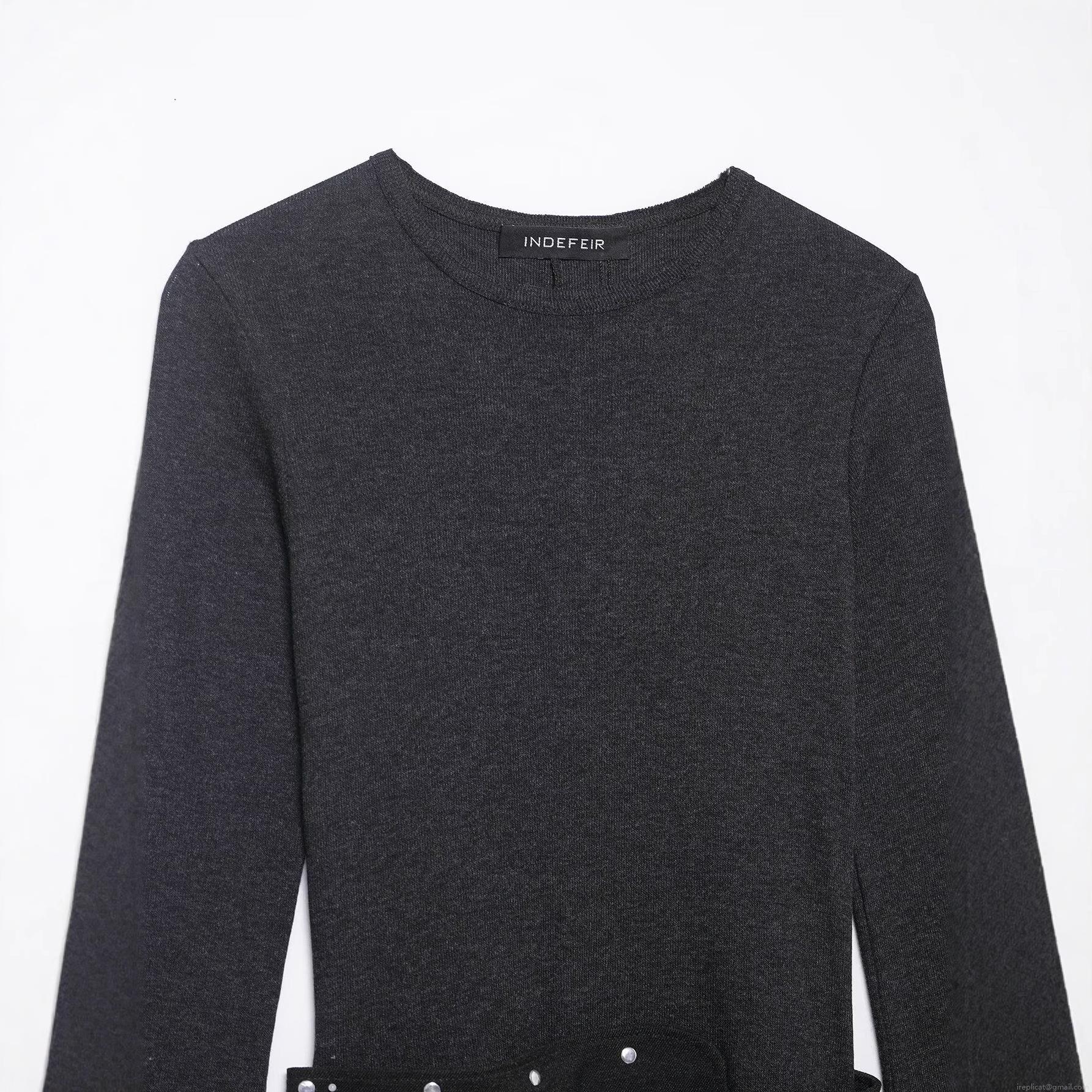 • Women's Elegant Long Sleeve Knit Midi Dress With Asymmetric Hem And Metal Eyelet Belt Solid Color Bodycon Fish Tail Dress For Party Evening