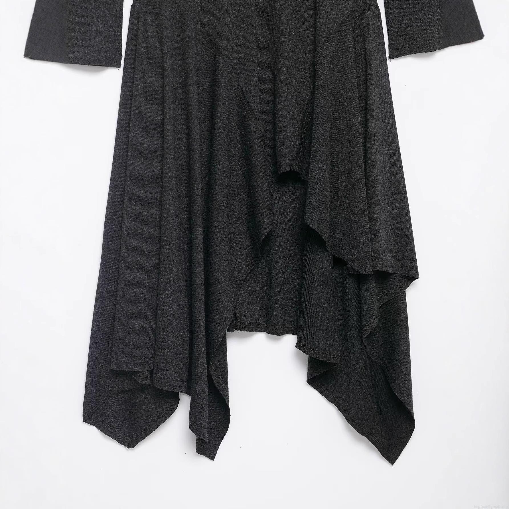 Solid Color, Fishtail Hem, Asymmetrical Cut, Metal Eyelet Belt