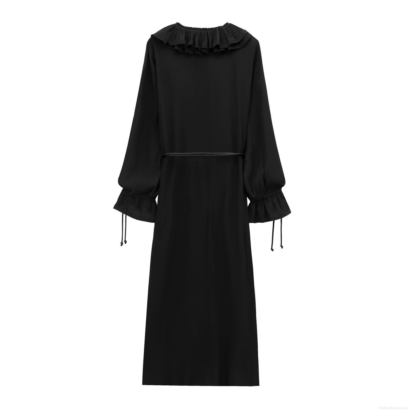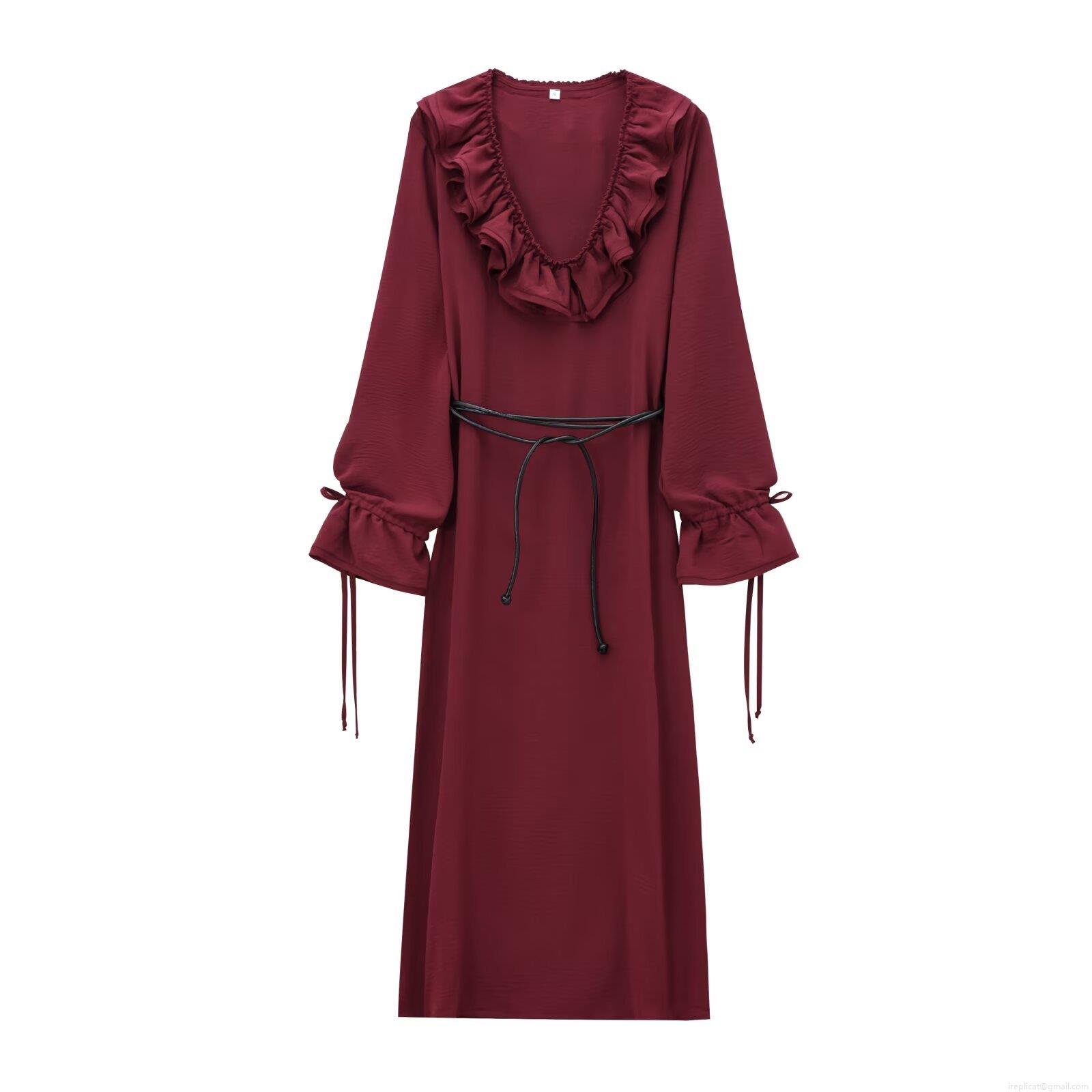 • Women's Elegant Long Sleeve Midi Dress V-Neck Ruffle Chiffon Tiered Solid Color A-Line Dress With Belt For Party Streetwear Ladies Clothing