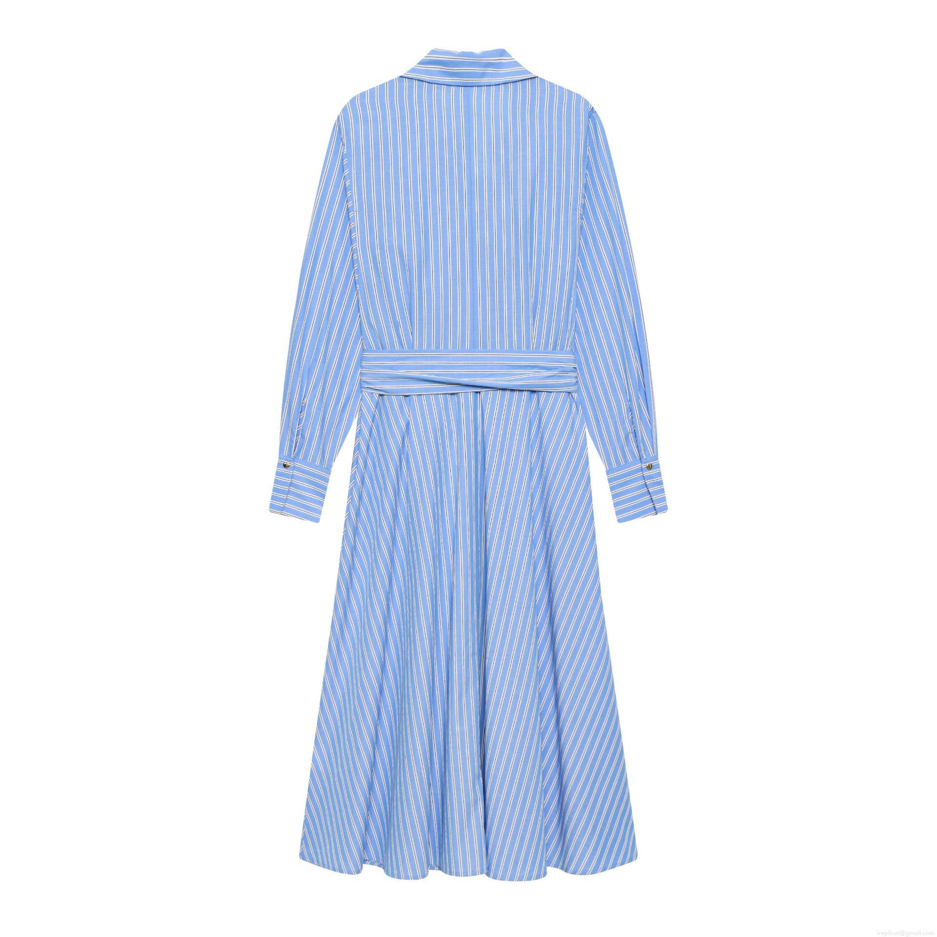 • Women's Elegant Long Sleeve Striped Shirt Dress With Belt Button Down A-Line Maxi Dress For Office Daily Casual Streetwear