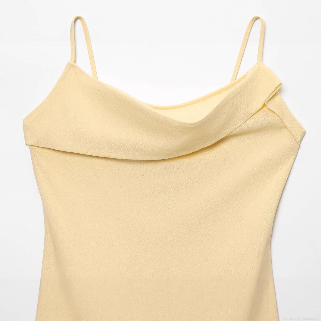 • Women's Elegant Midi Slip Dress Slub Cotton Linen Blend Cowl Neck Spaghetti Strap Backless Tie-Up Solid Color Minimalist Summer Party Vacation Dress