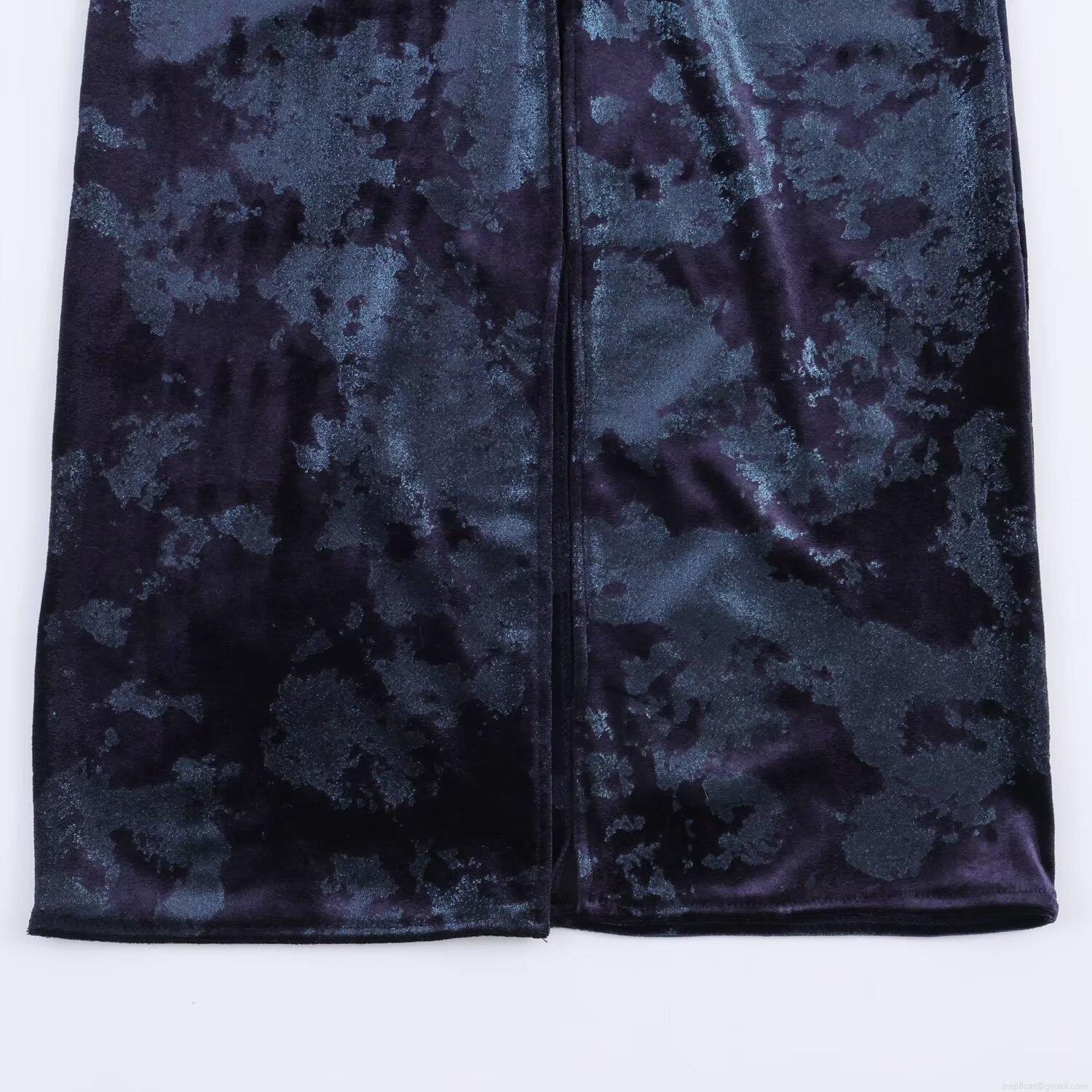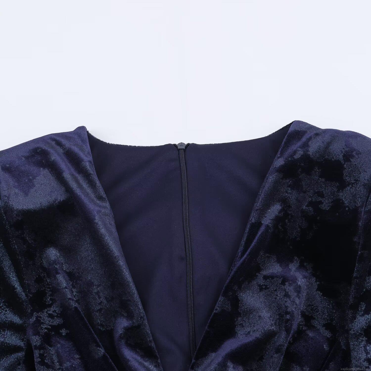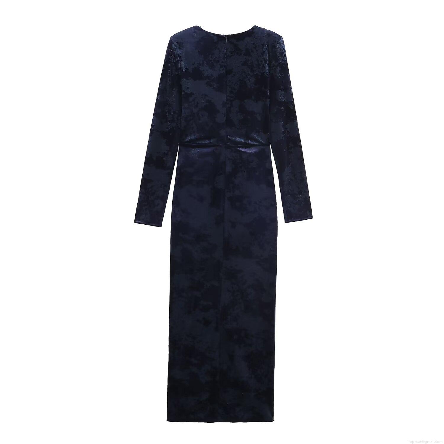 • Women's Elegant Navy Blue Velvet Midi Dress Deep V-Neck Long Sleeve Slim Fit With Crescent Moon Accessory For Evening Party Autumn Fashion