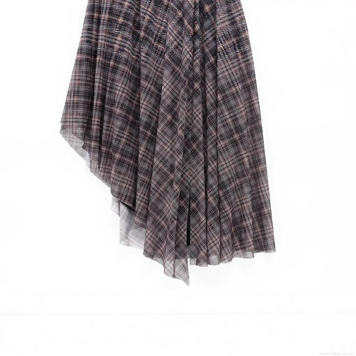 Gingham, Checkered Pattern, Pleats, Lace, Backless, Irregular Cut