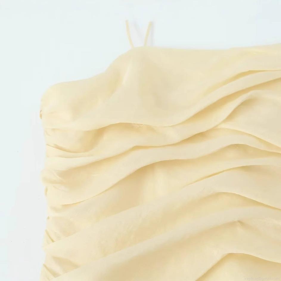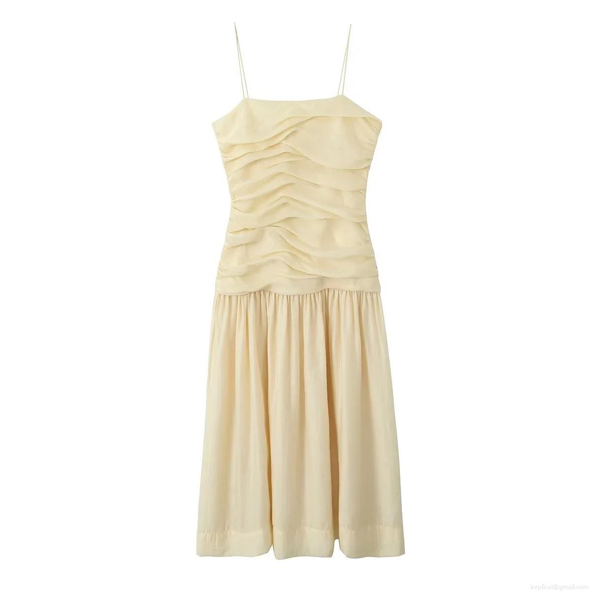 • Women's Elegant Pleated Midi Cami Dress French Vintage Polyester Ruched Smocked High Waist Sleeveless Straight Neck Party Evening Vacation Dress