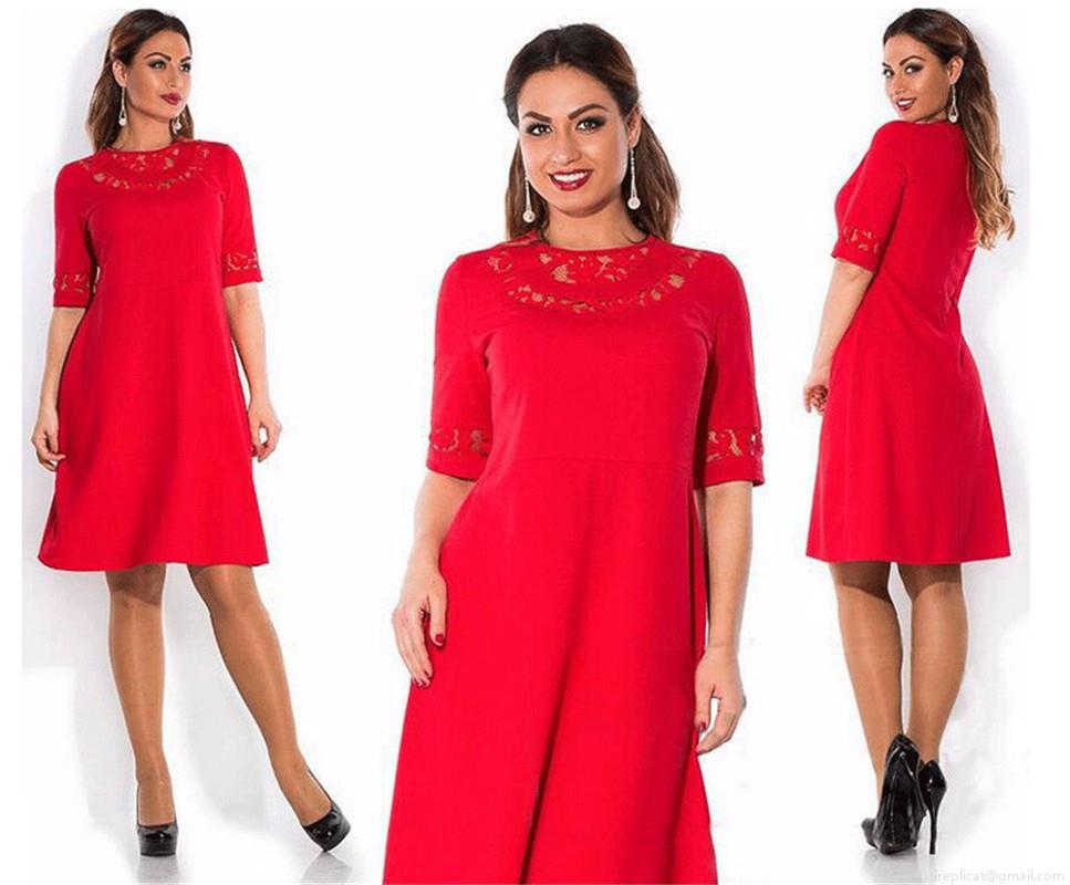 Solid Color, Lace Patchwork, A-line Style, Openwork Neckline