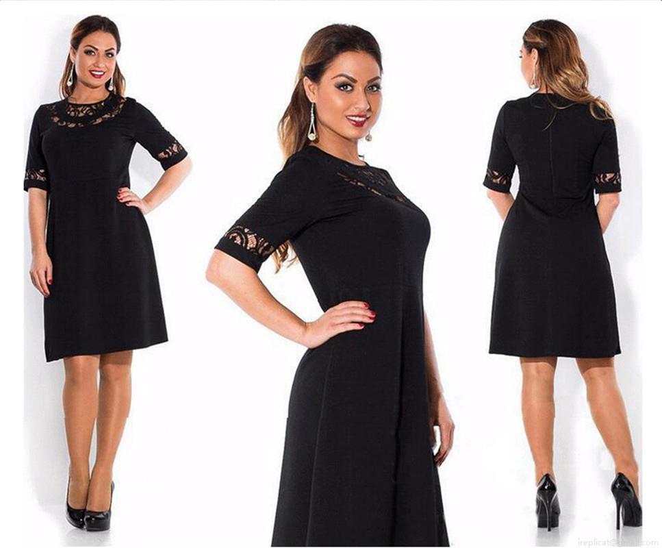 • Women's Elegant Round Neck Lace Patchwork A-Line Dress Sexy Plus Size Polyester Midi Dress For Streetwear Party Autumn Winter