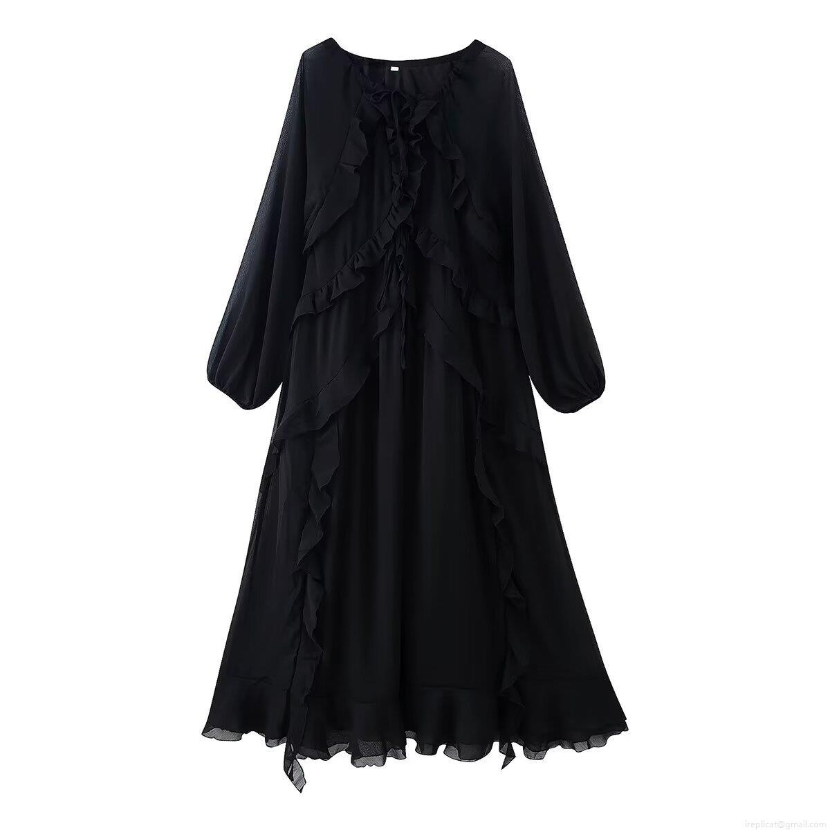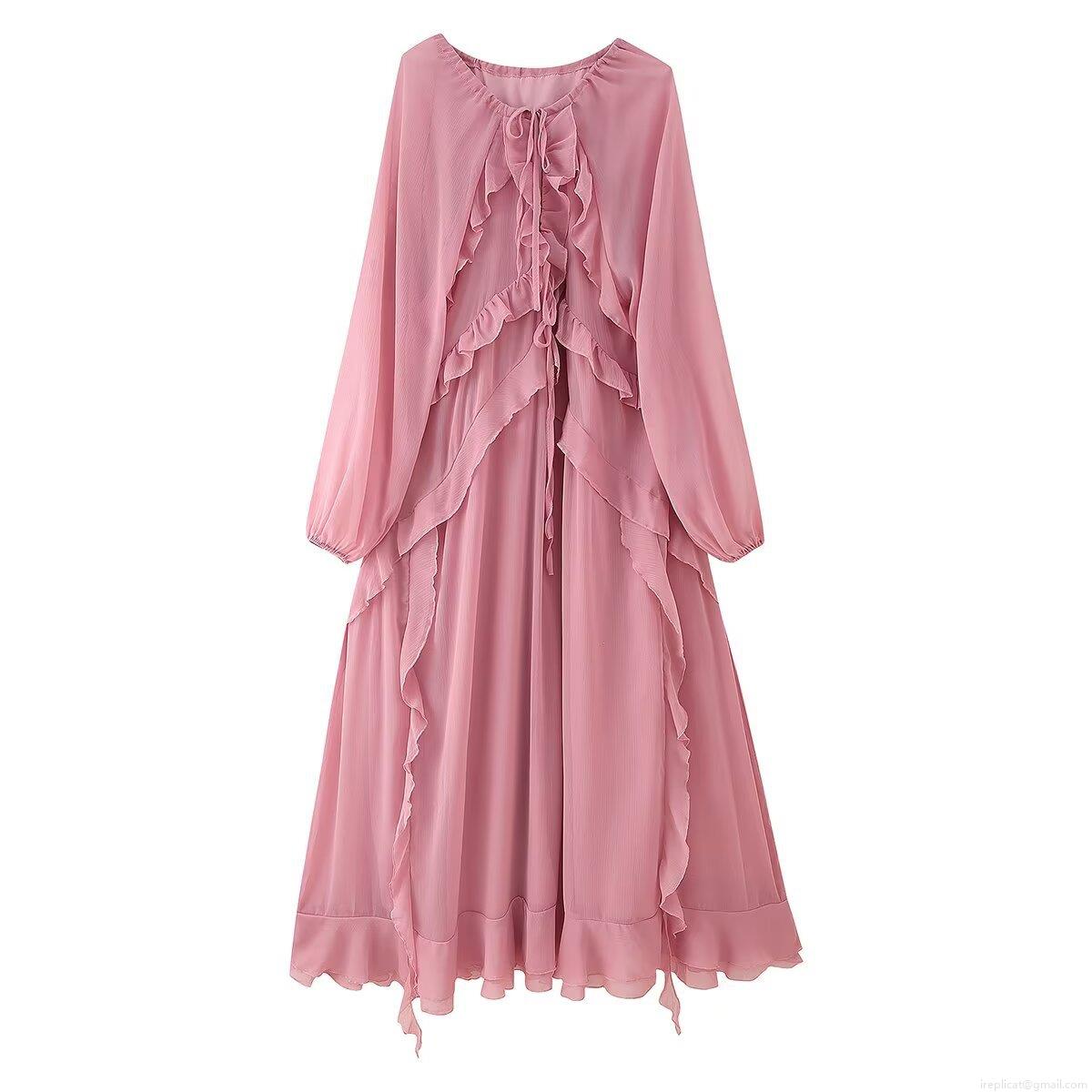 • Women's Elegant Ruffled Tiered Long Sleeve Midi Dress Round Neck Tie-Front Bow Chiffon-Feel Polyester Dress For Party Beach Vacation Summer Sweet Pink Flowy Long Dress
