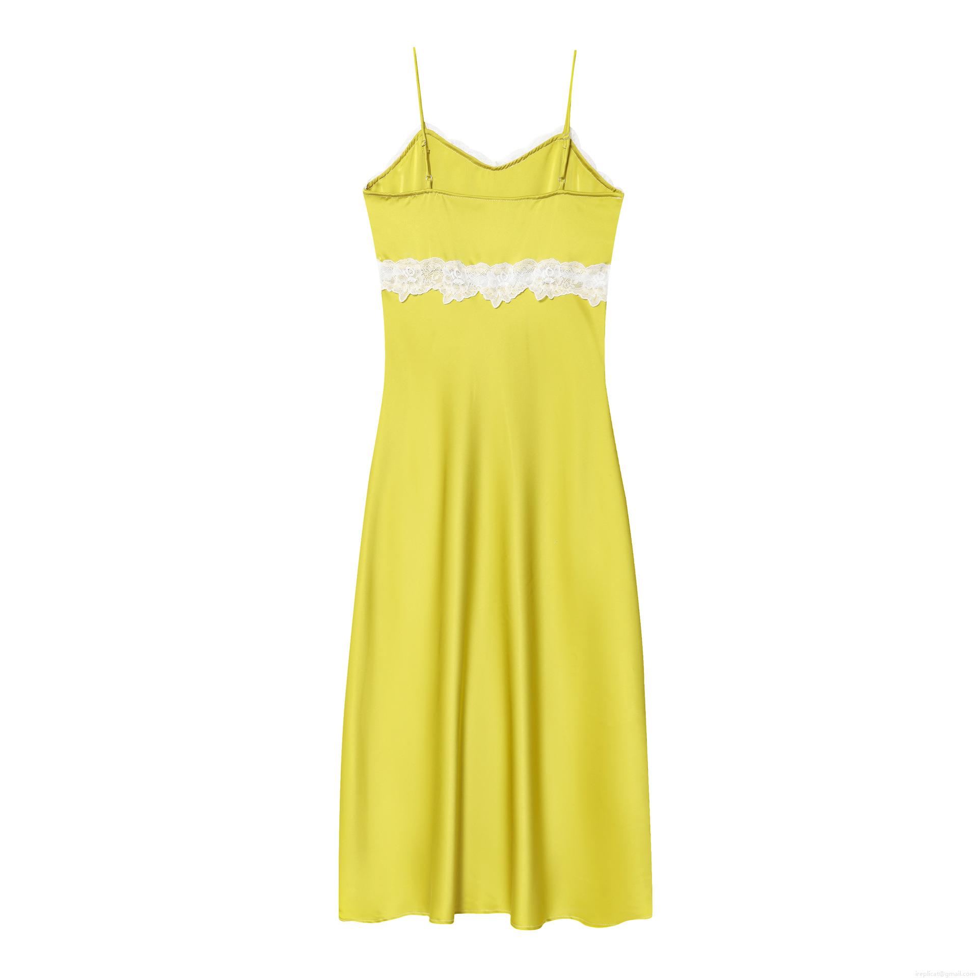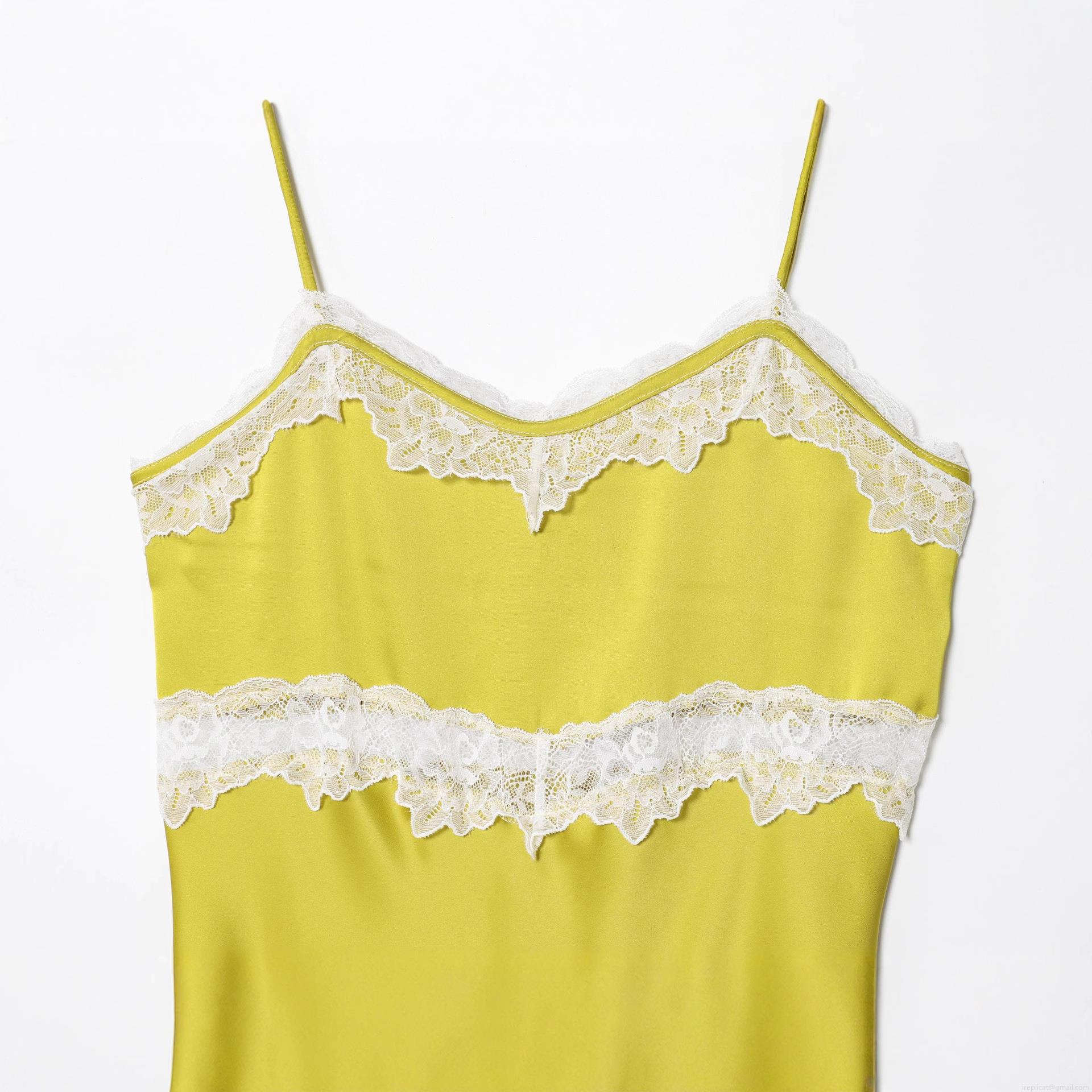 • Women's Elegant Satin Midi Cami Dress With White Lace Trim Adjustable Straps Sleeveless Sexy V Neck Summer Party Slip Dress