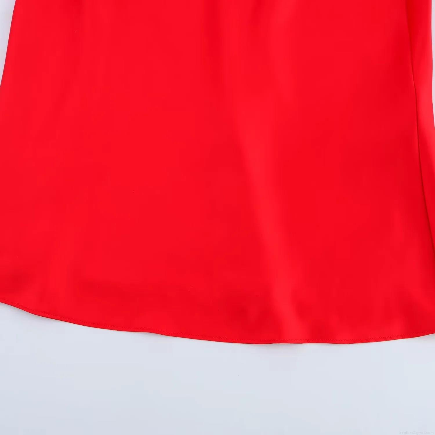 • Women's Elegant Satin Midi Dress Solid Red Cami Sleeveless Bow Pleated Evening Party Gown Sexy Slim Fit Socialite Style Cocktail Dress