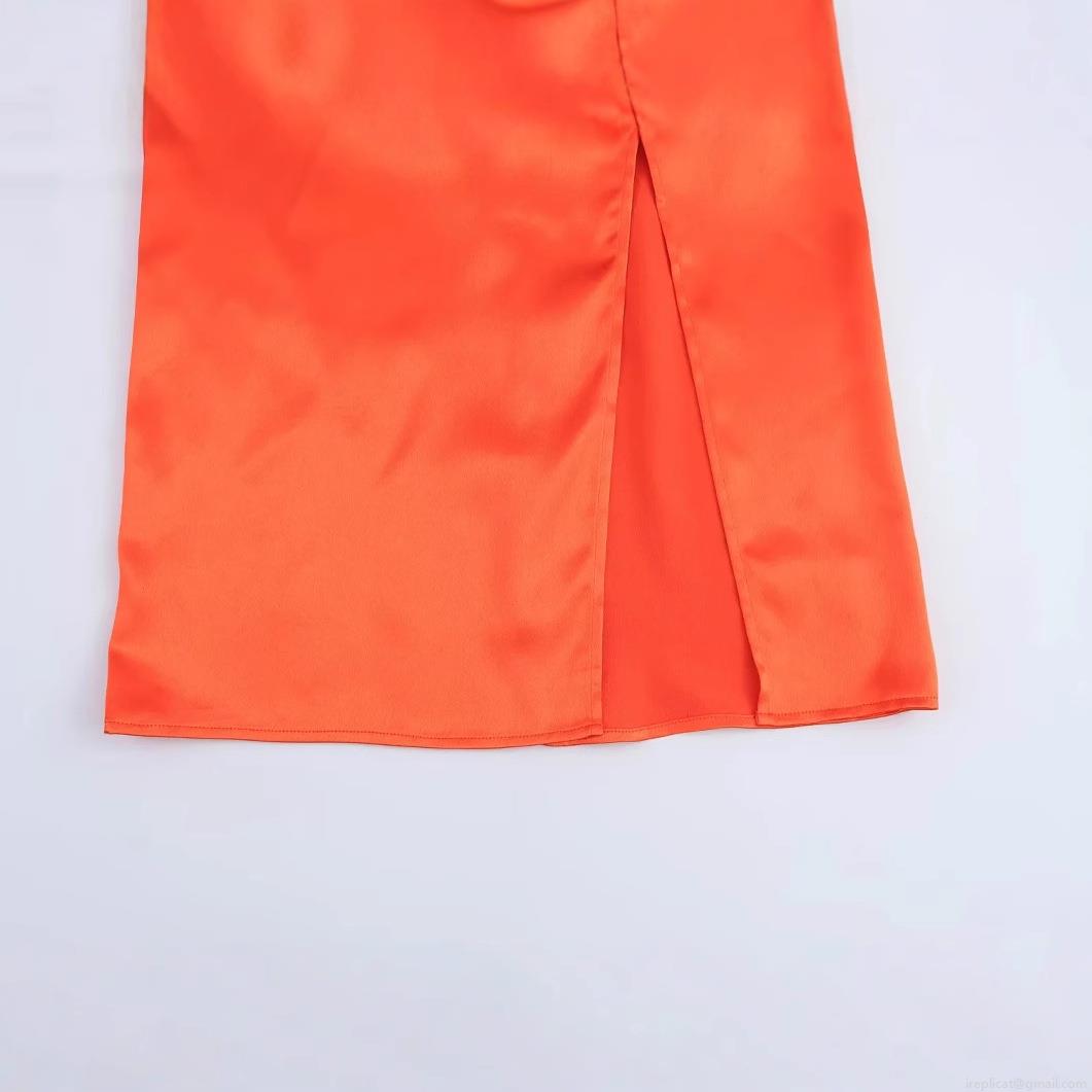 Solid Color, Pleats, Satin, Neckband, High Fork