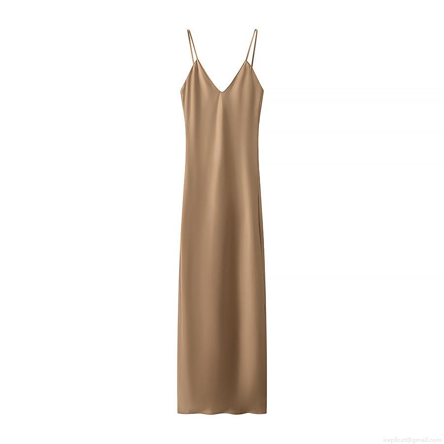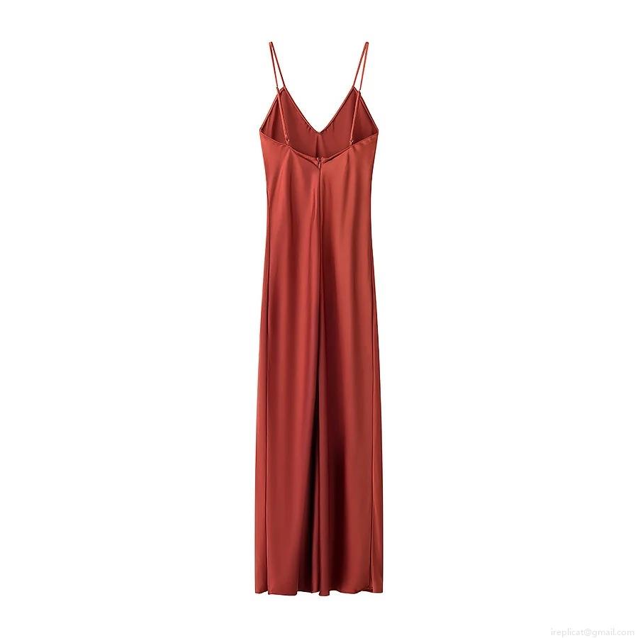 • Women's Elegant Satin Slip Dress V-Neck Sleeveless Midi Cami Dress For Party Banquet Sexy Solid Color Summer Long Dress