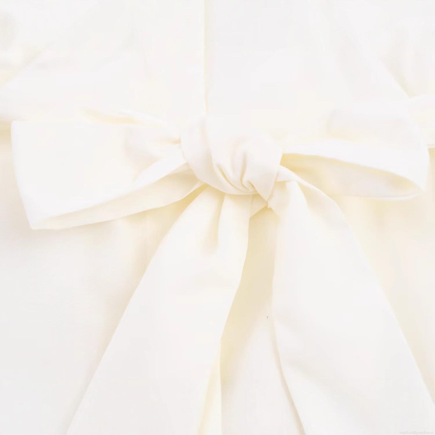 Solid Color, V-neck, Puff Sleeves, Single-breasted, Bow Tie, Lantern Sleeves