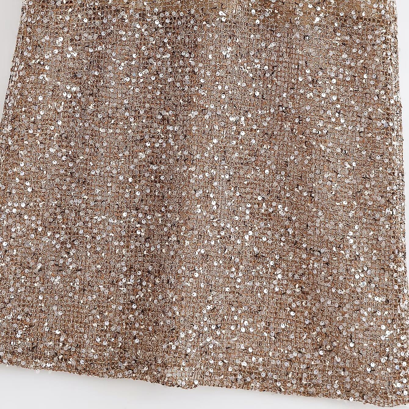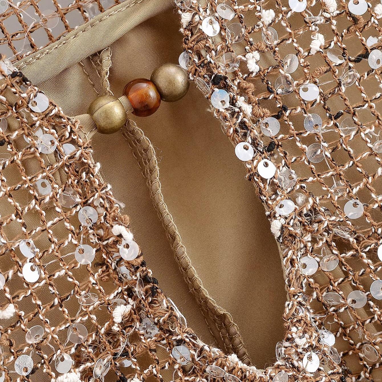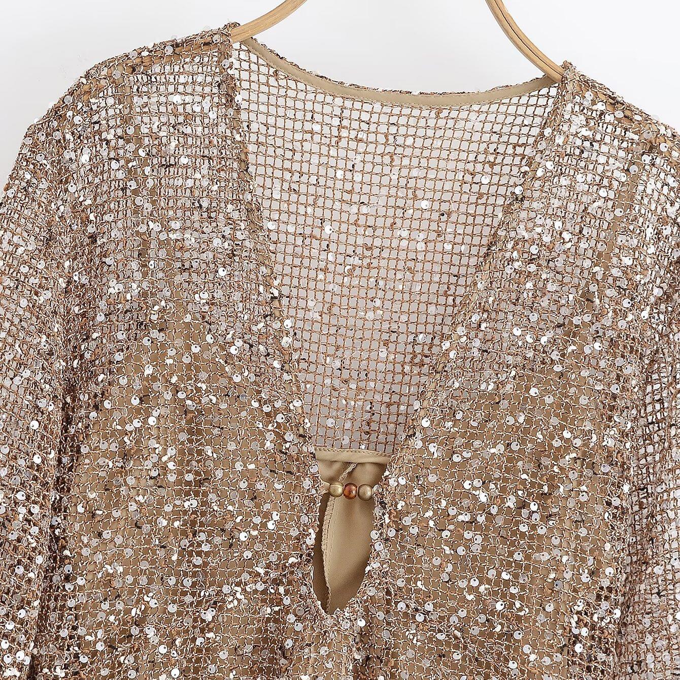 Solid Color, Sequin, V-neck, Perspective, Mesh Cutout, Sequin Decoration