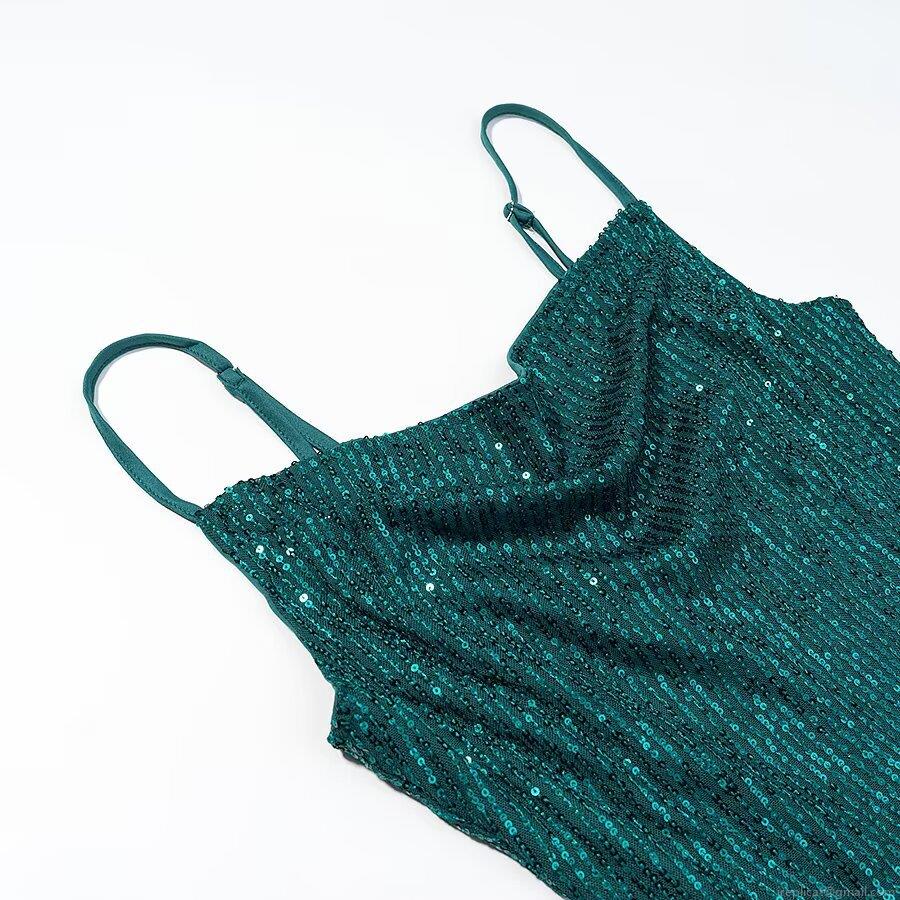 • Women's Elegant Sexy Peacock Green Sequin Midi Dress Cowl Neck Side Slit Adjustable Spaghetti Strap Sparkly Polyester Bodycon Party Evening Dress