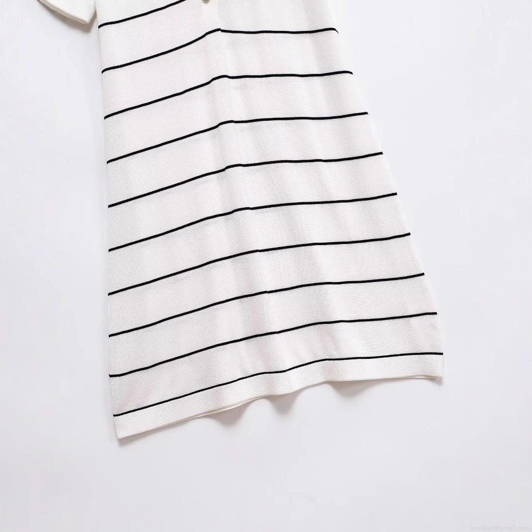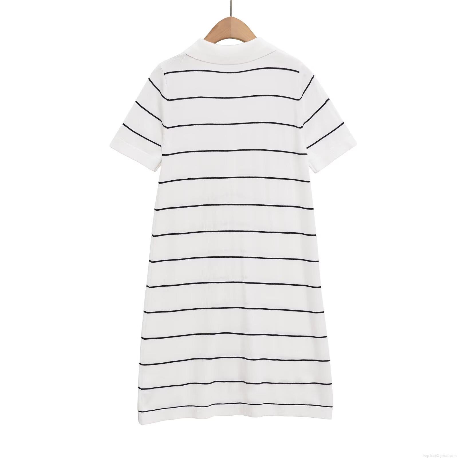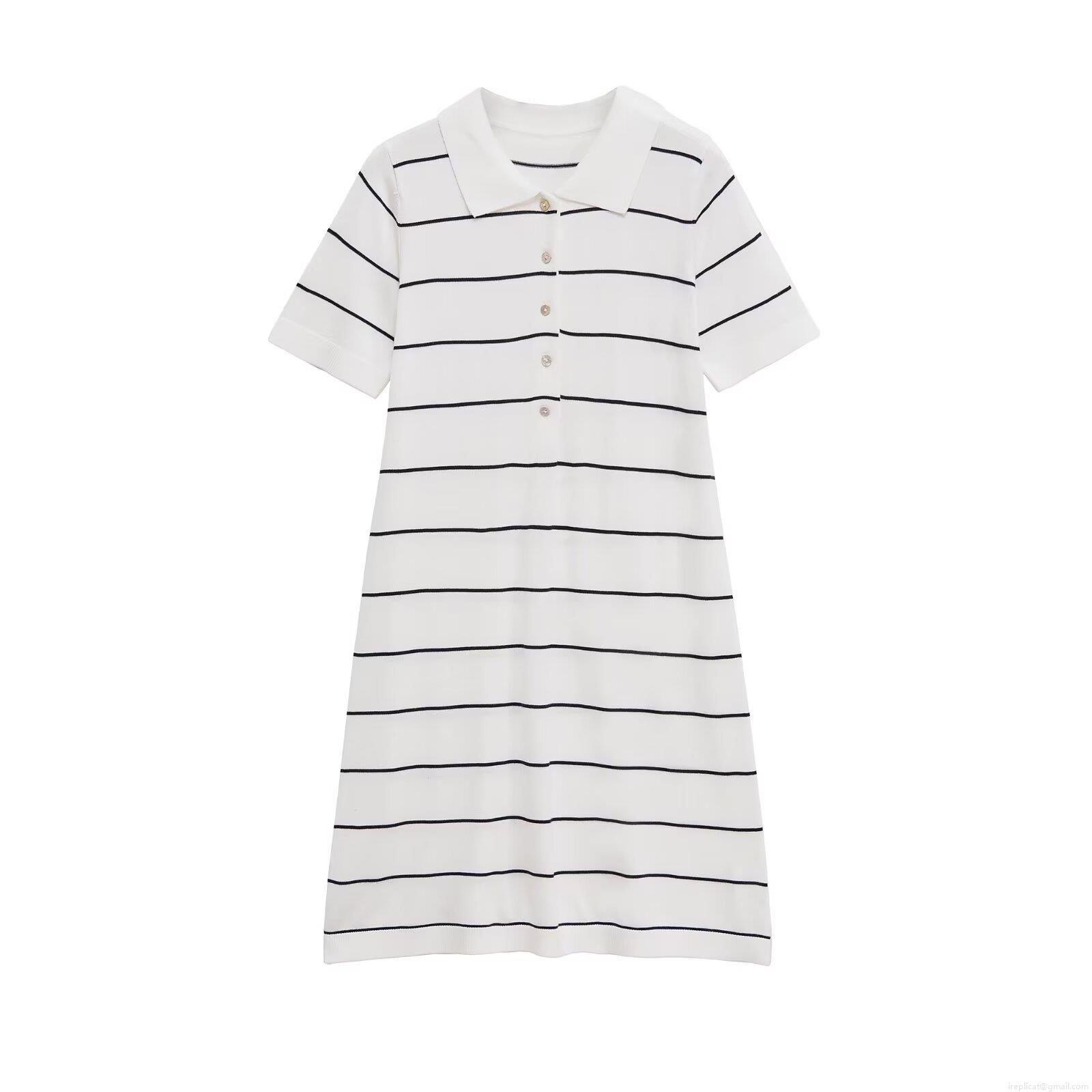 • Women's Elegant Short Sleeve Striped Polo Dress Knit Polyester Button Placket Midi Dress For Summer Daily Casual Wear