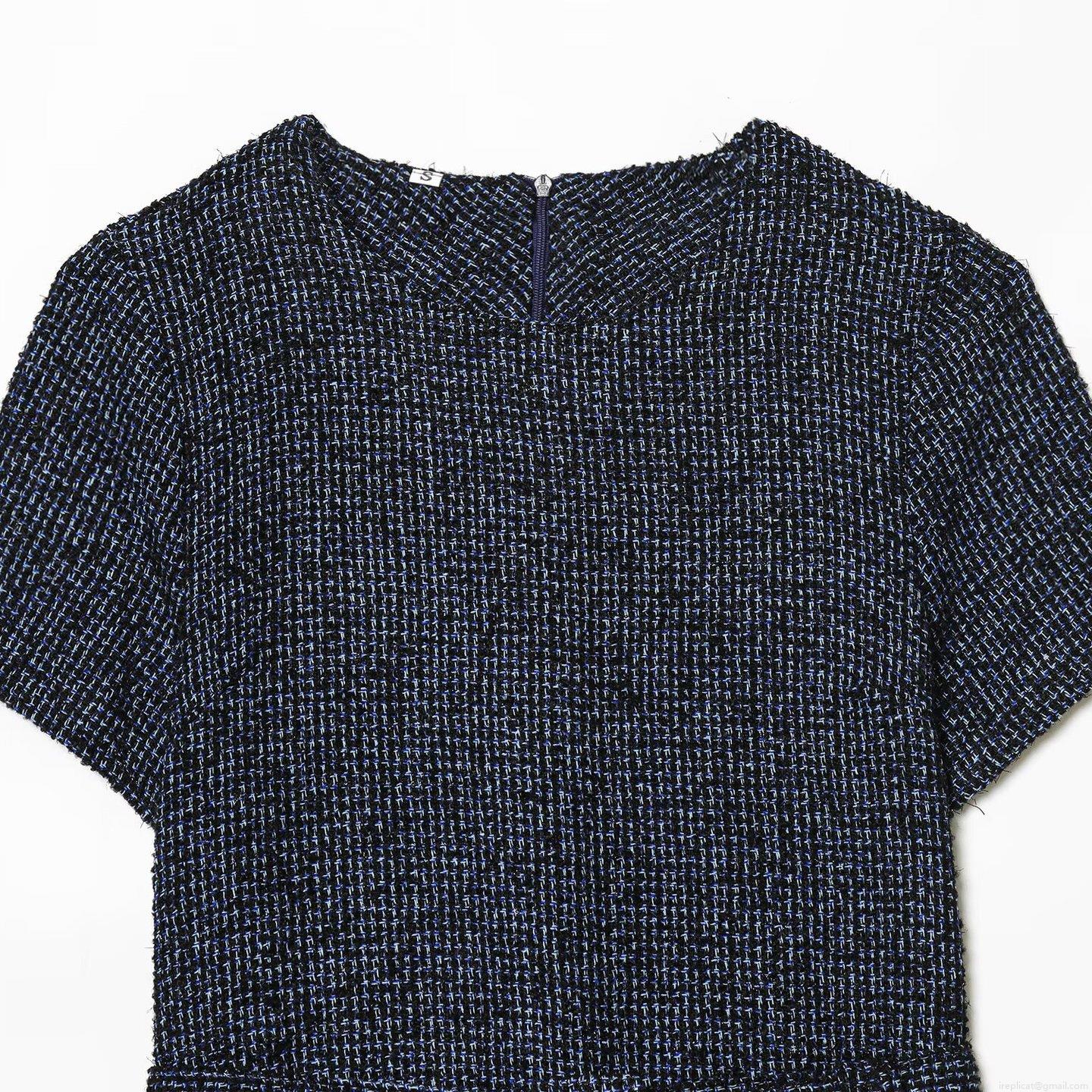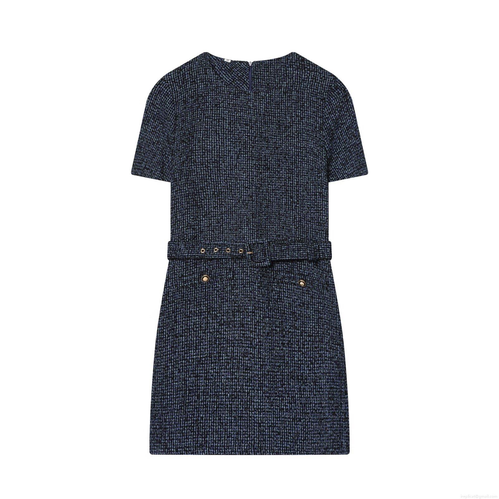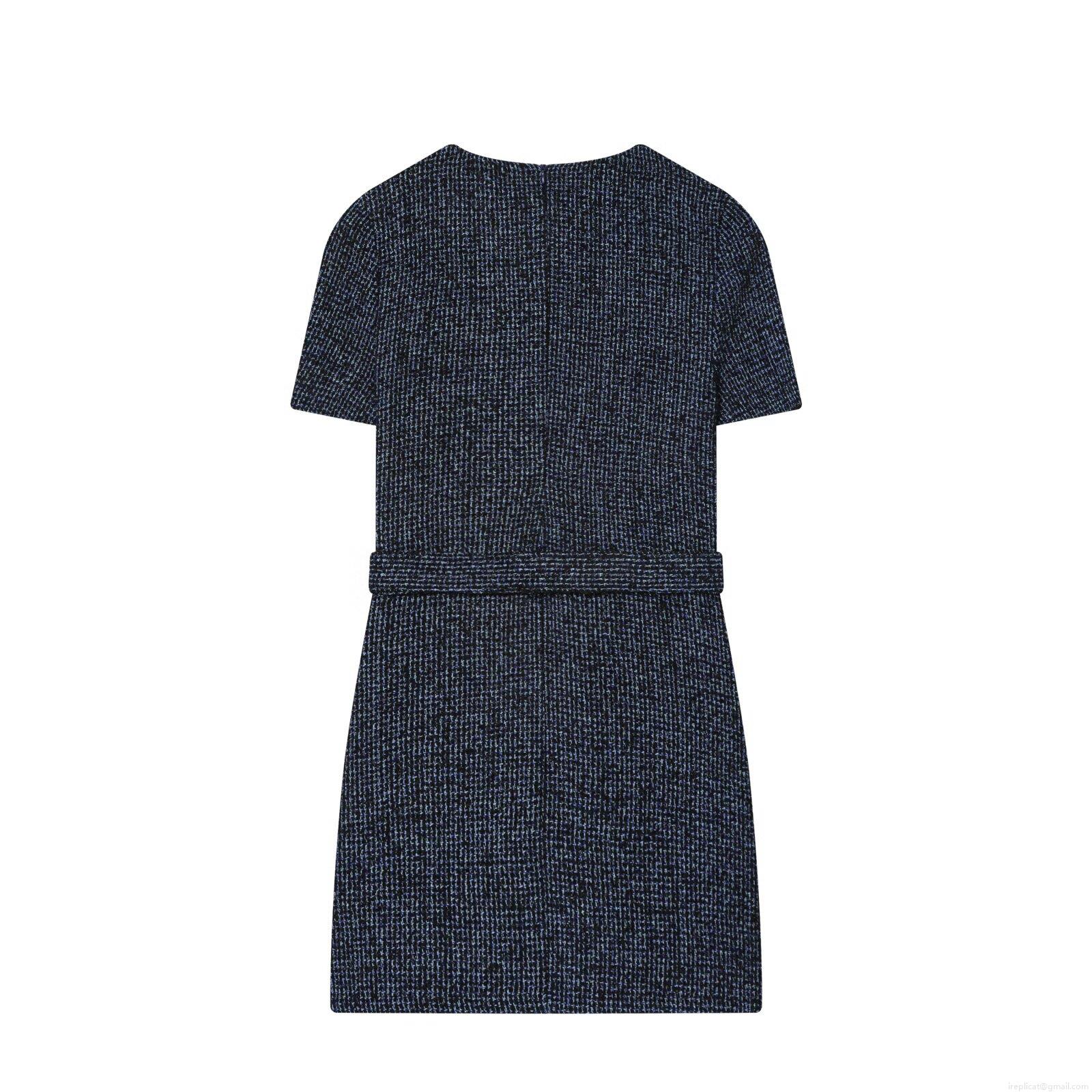 • Women's Elegant Short Sleeve Tweed Dress With Belt Round Neck Slim Fit A-Line Midi Dress Office Lady Work Party Dress