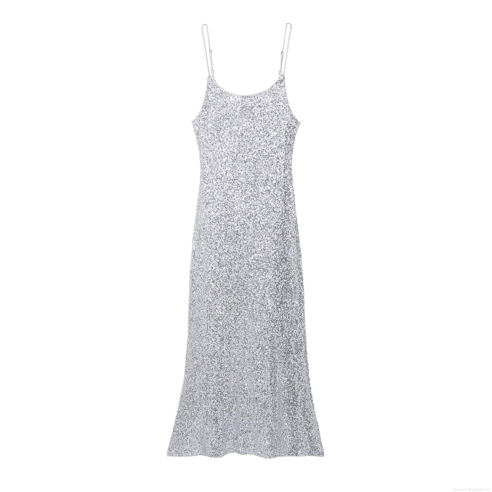 Solid Color, Sequin Decoration, Metallic Feel, Thin Straps