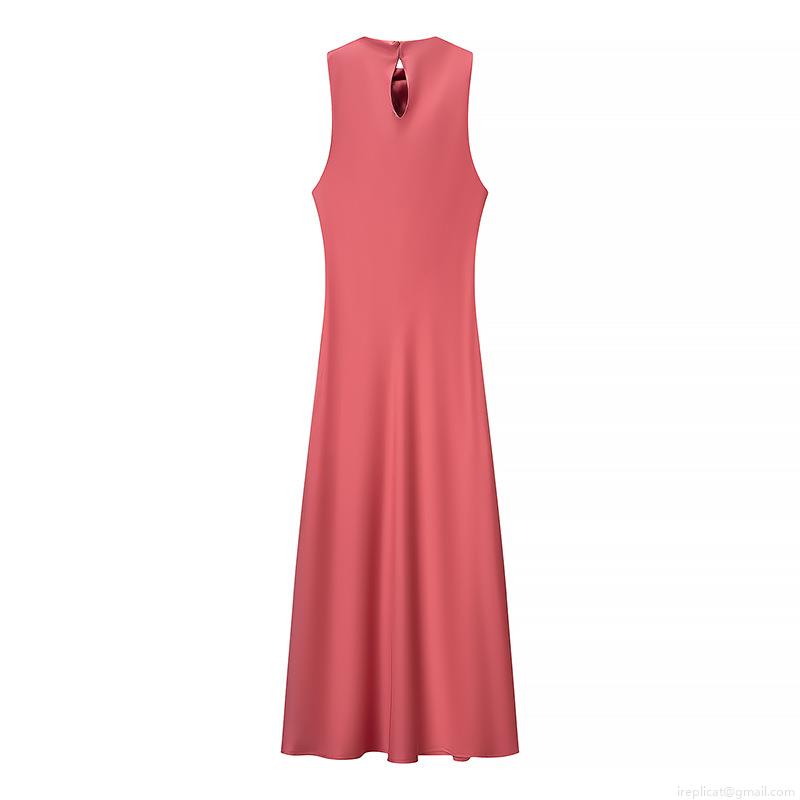 • Women's Elegant Sleeveless Halter Neck Backless Satin Midi Dress Solid Color A-Line Party Wedding Evening Socialite Long Dress With Keyhole Back