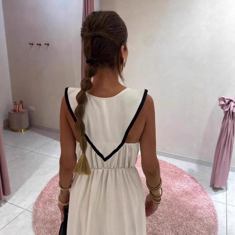 • Women's Elegant Sleeveless Midi Dress Contrast Color Black Trim Bodycon Dress V-Back Minimalist High Waist Summer Dress For Casual Party Office Wear