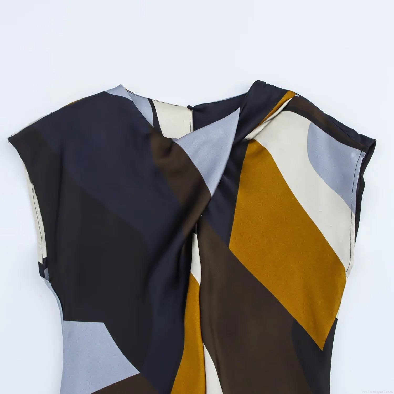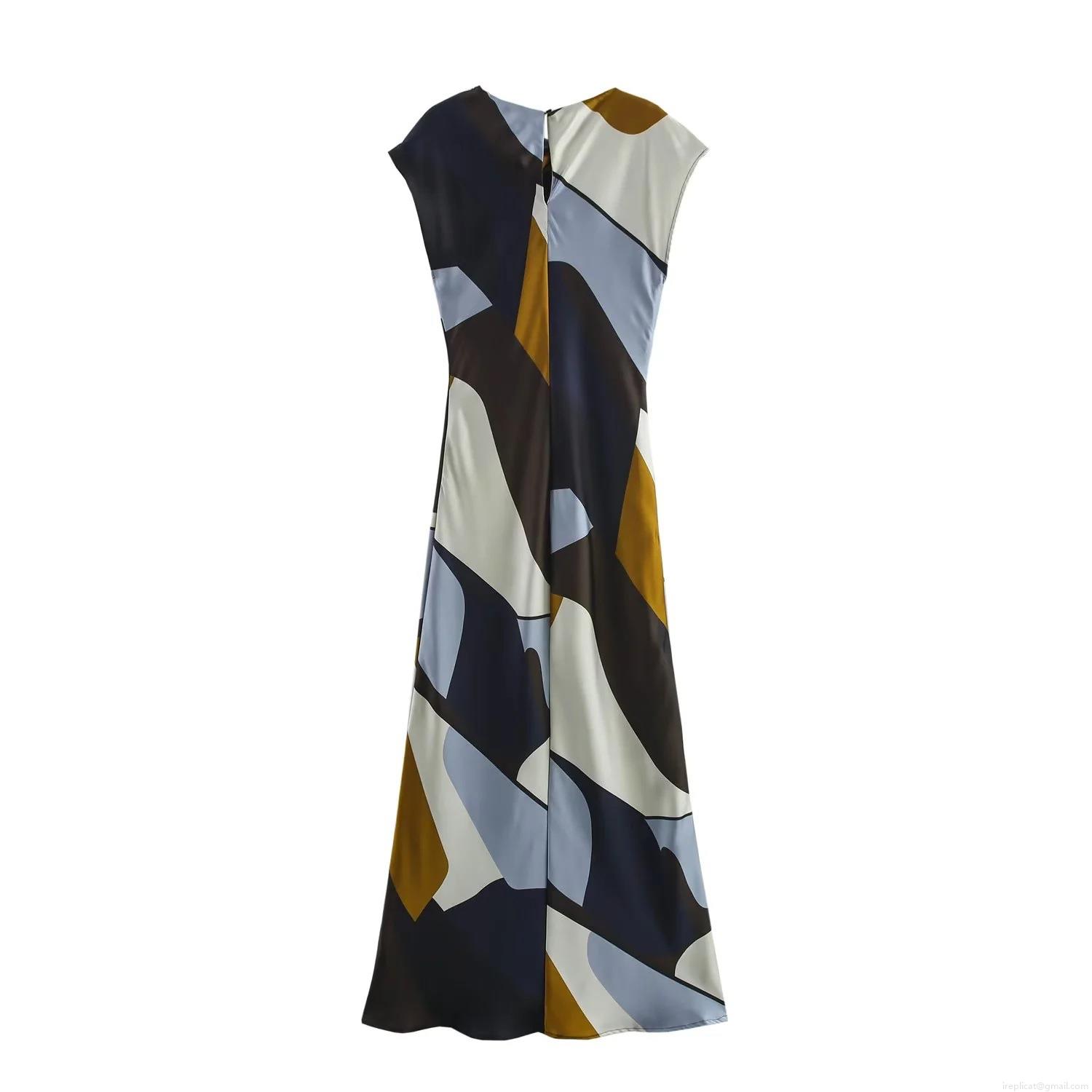 • Women's Elegant Sleeveless Satin Dress Geometric Print Crew Neck Slim Fit Midi Long Dresses for Party Evening Vacation Polyester Dress