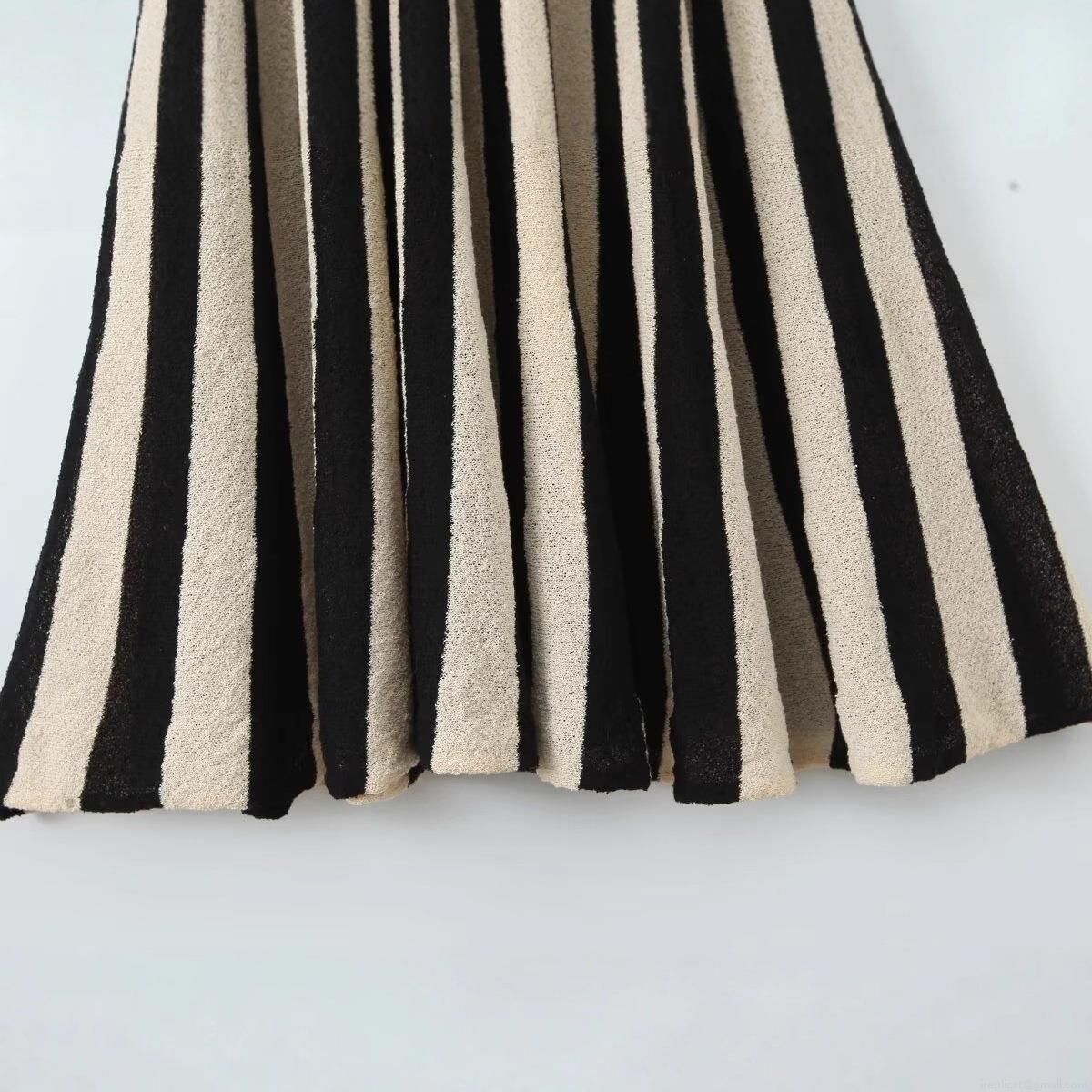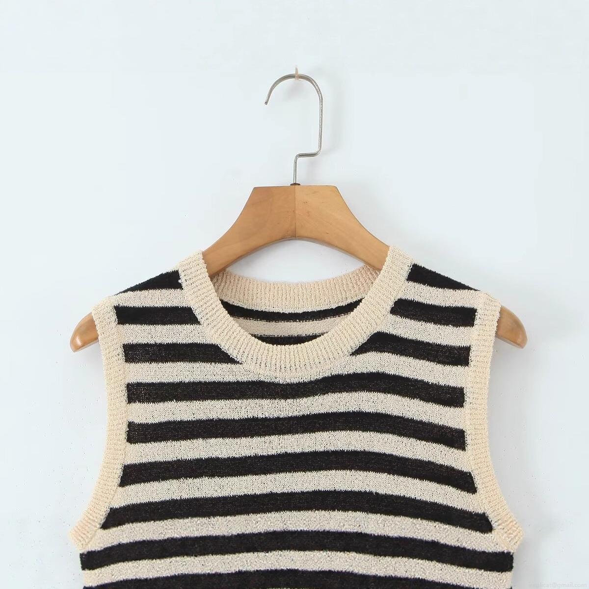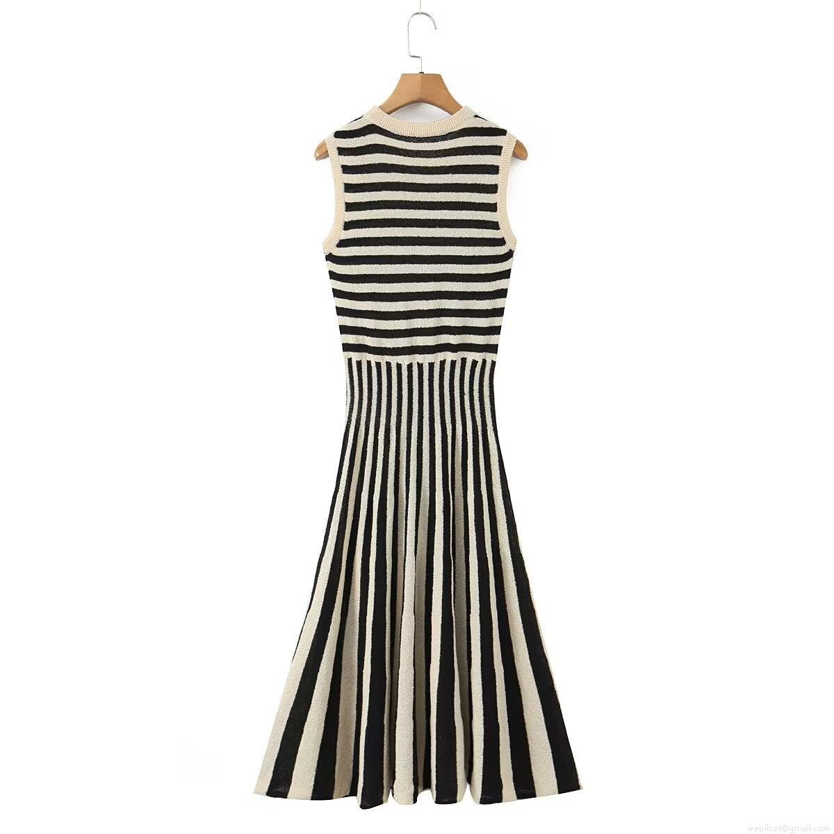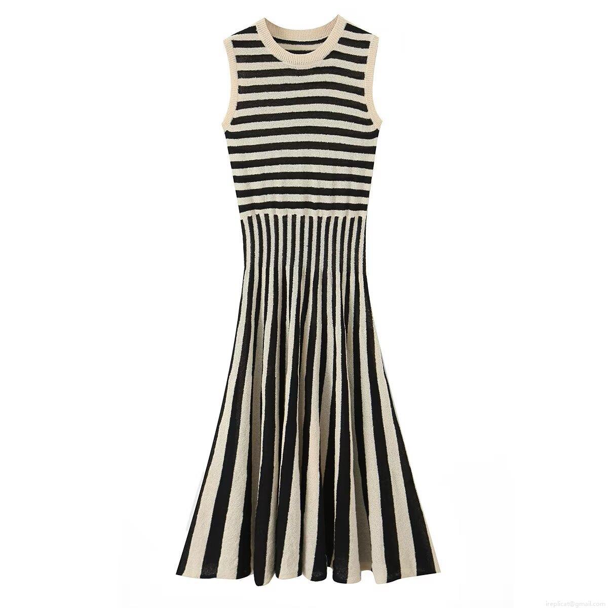 • Women's Elegant Sleeveless Stripe Knit Midi Dress Round Neck Slim Fit Polyester Patchwork Tank Dress For Summer Party Daily Dating