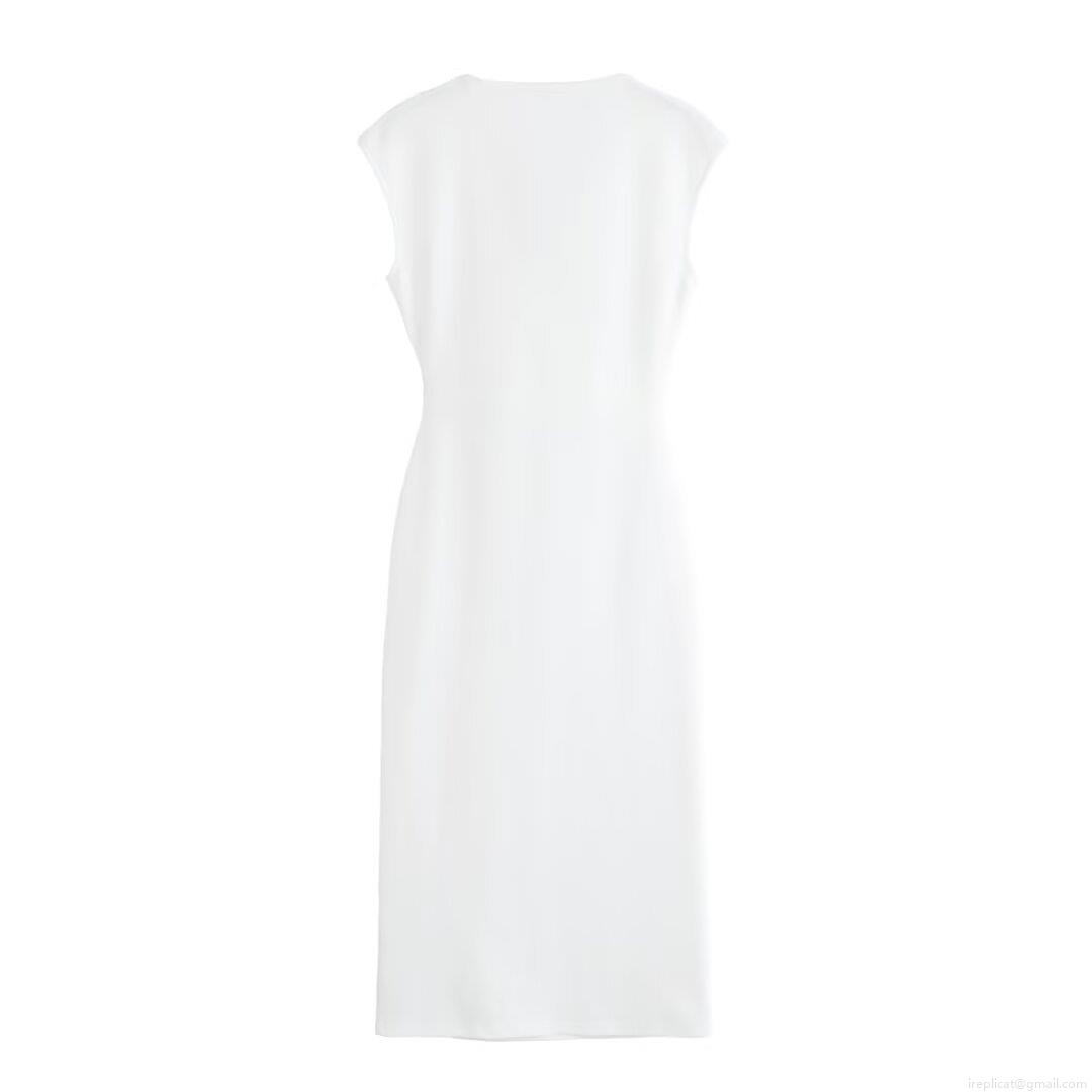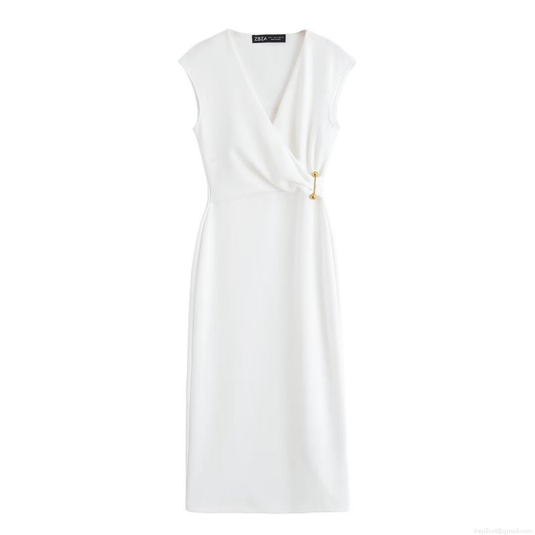 • Women's Elegant Sleeveless V-Neck Midi Dress With Golden Metallic Pin Decoration Solid Color Slim Fit Ribbed Polyester Summer Party Bodycon Dress