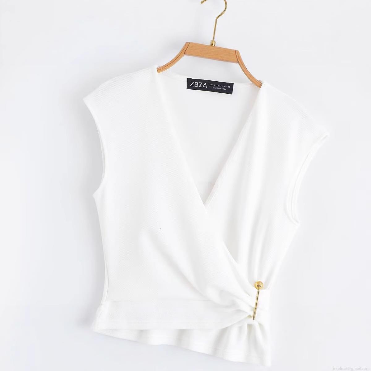 Solid Color, Waist shaping, V-neck, Pin Decoration