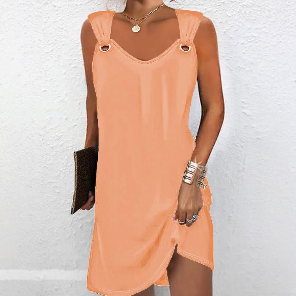 • Women's Elegant Sleeveless V-Neck Midi Dress With Metal Buckle Solid Color Slim Fit Summer Commuter Dress Ladies Sexy Bodycon Casual Party Gowns Fashion