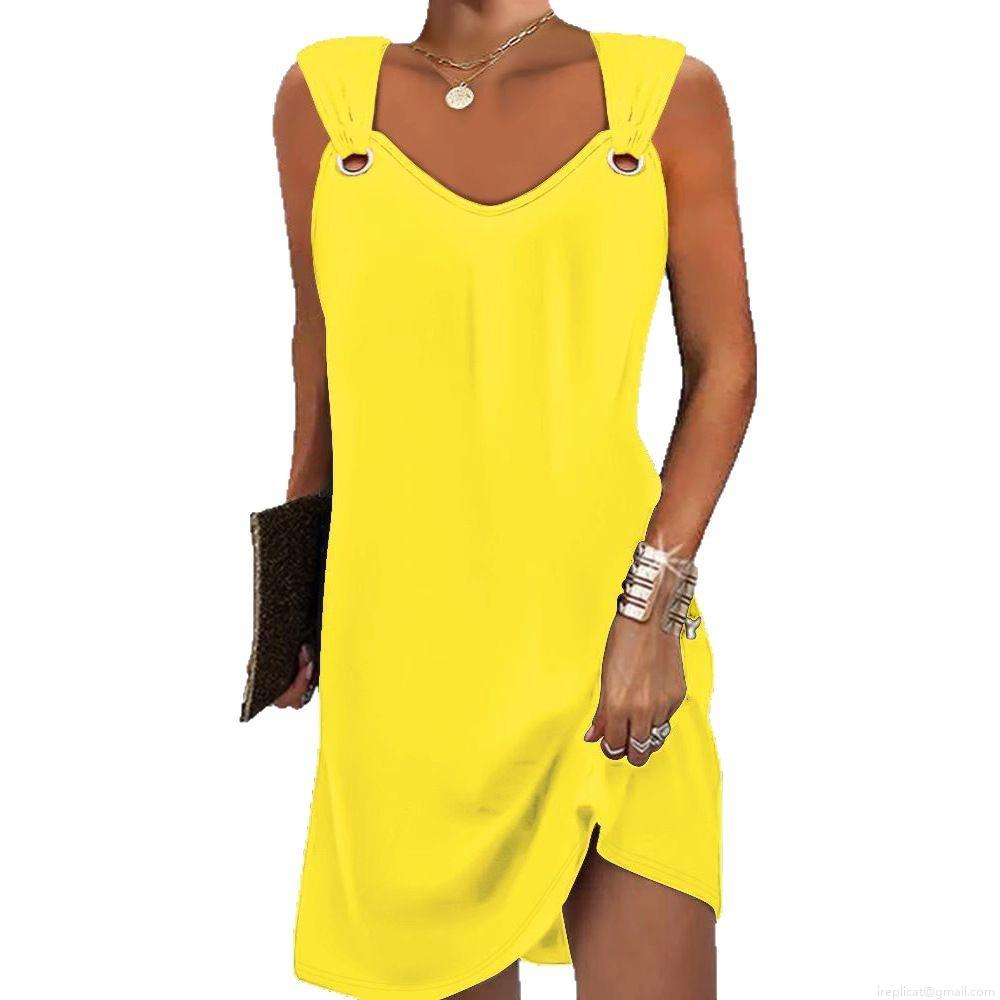 Solid Color, Buttons, V-neck, Metal Buckle, Sleeveless