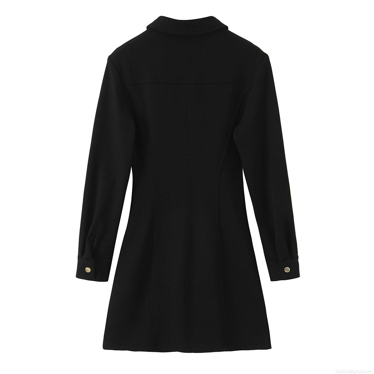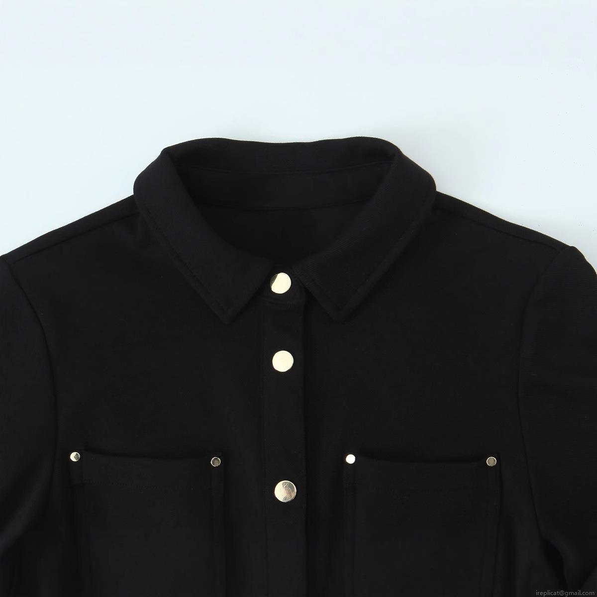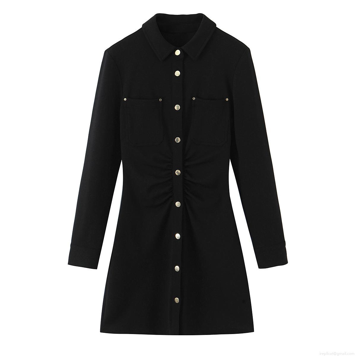 Solid Color, Metal Buttons, Shirt Collar, Waist-cinching Pleats