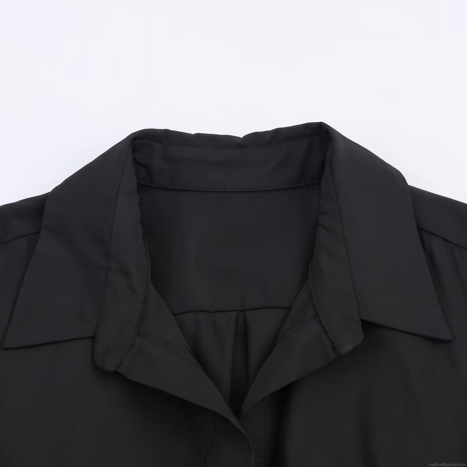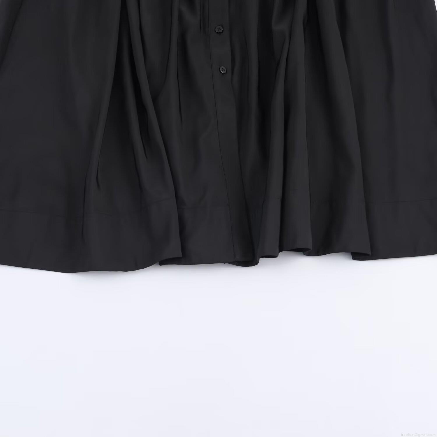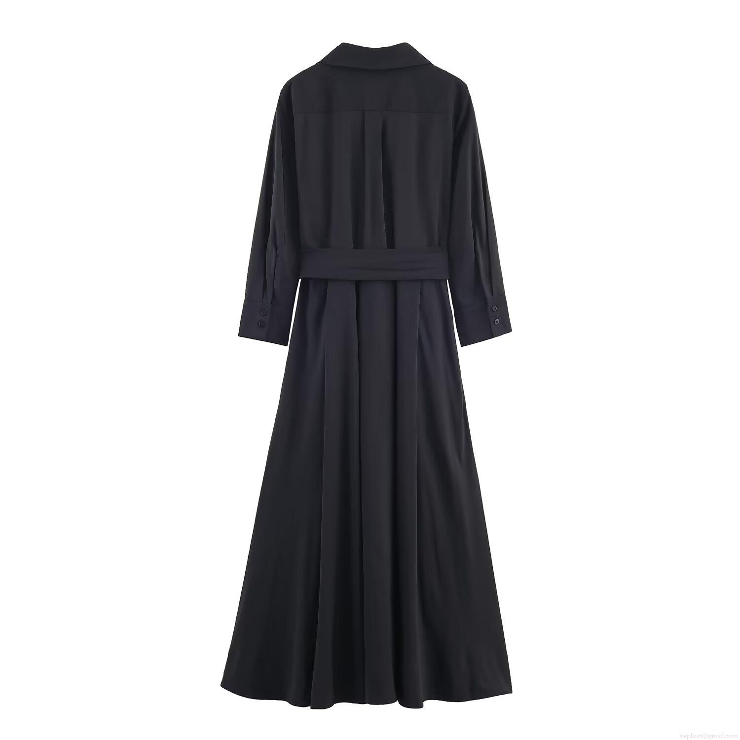 • Women's Elegant Solid Black Long Sleeve Shirt Midi Dress With Bow Tie Waist Full Swing Skirt Office Lady Polyester Dress