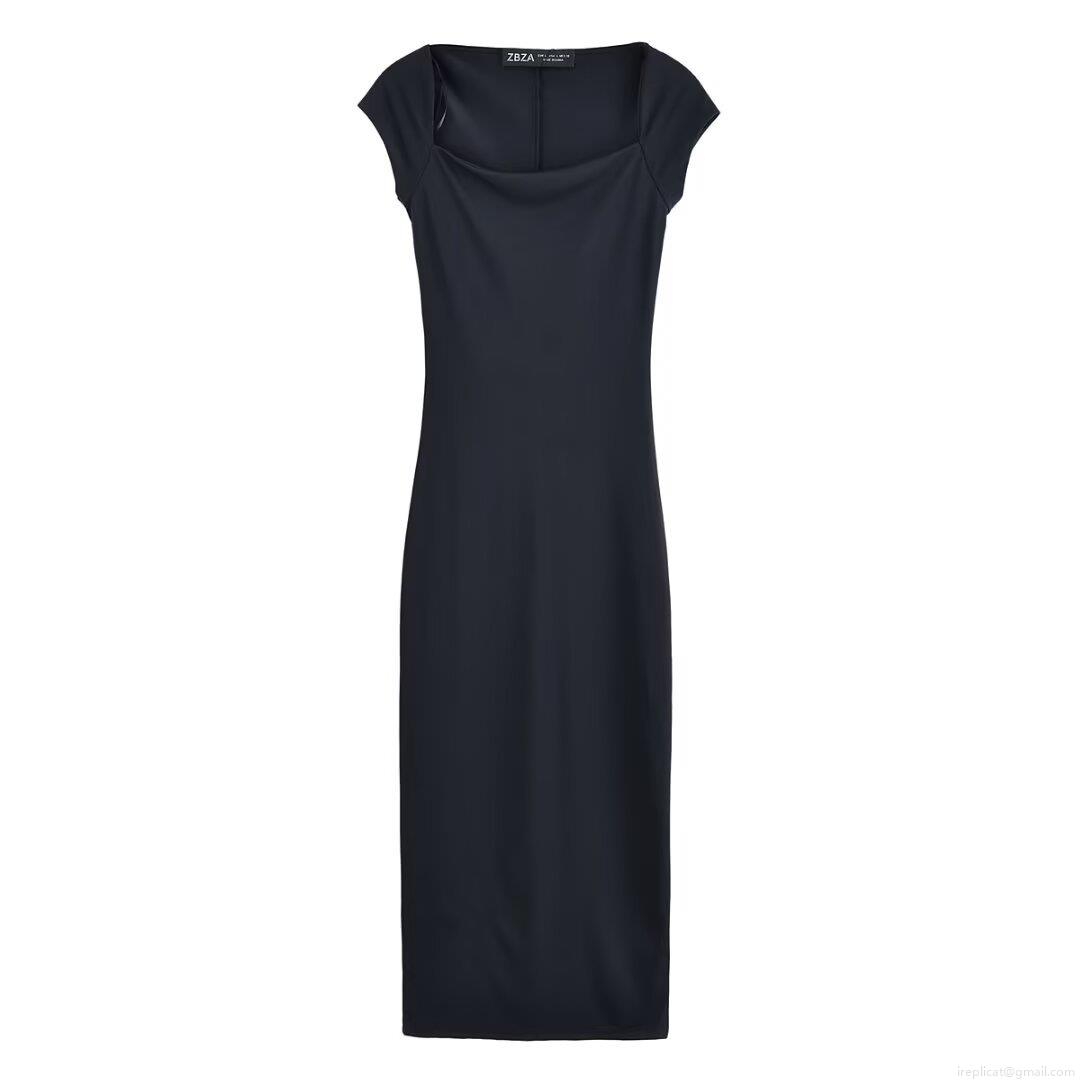 • Women's Elegant Square Neck Short Sleeve Midi Dress Slim Fit Solid Color Polyester A-Line Dress For Streetwear Party Date Night Fashion
