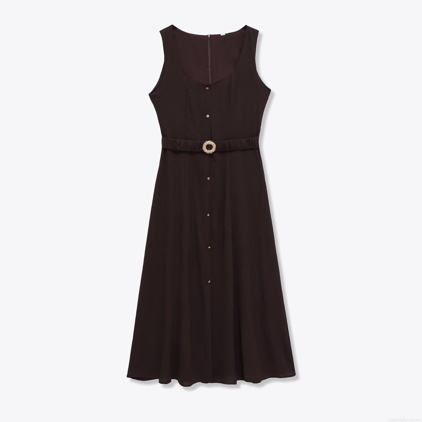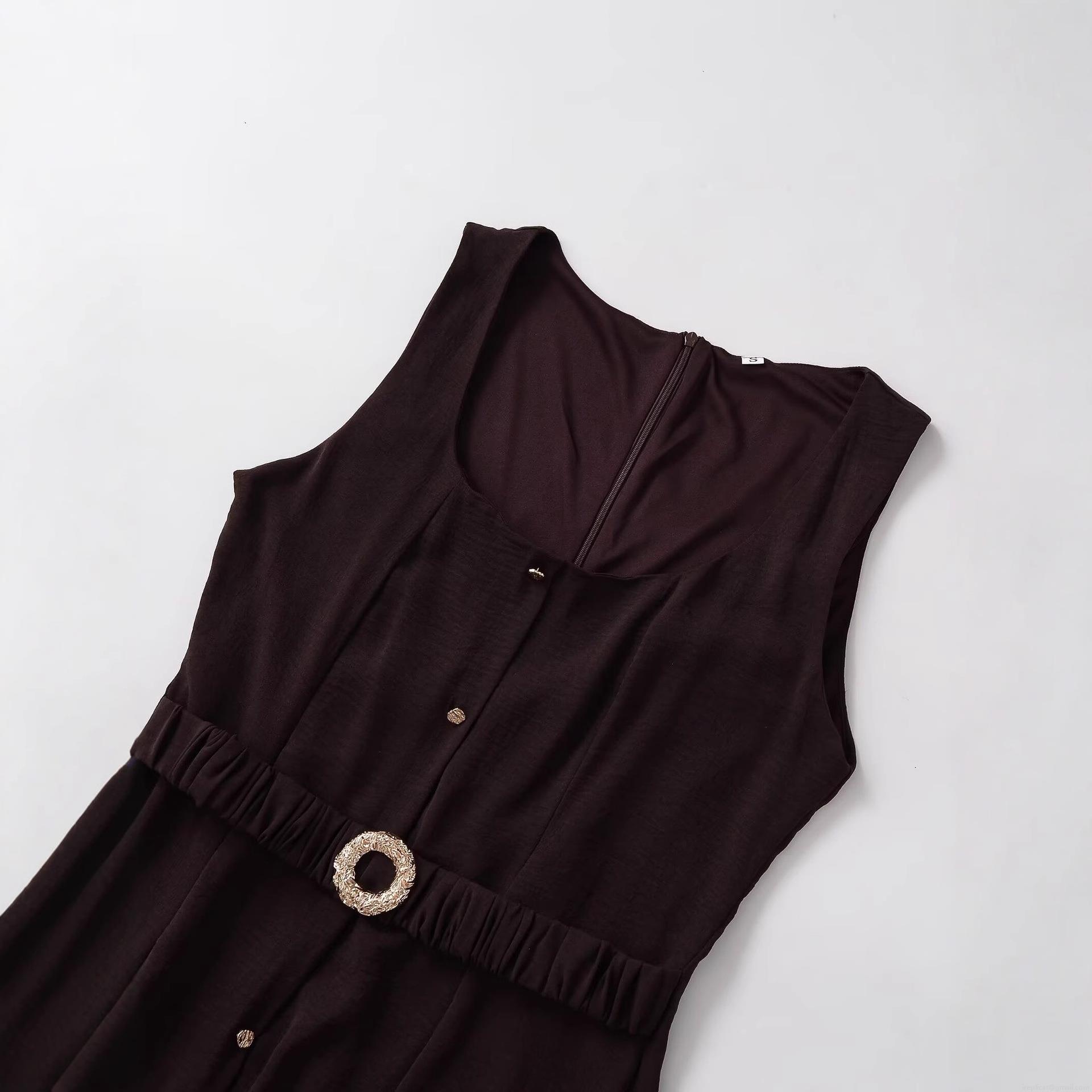 • Women's Elegant Square Neck Sleeveless Midi Dress Acetate Satin Vacation Style A-Line Dress With Rhinestone Buckle Belt For Summer Party Fashion Lady