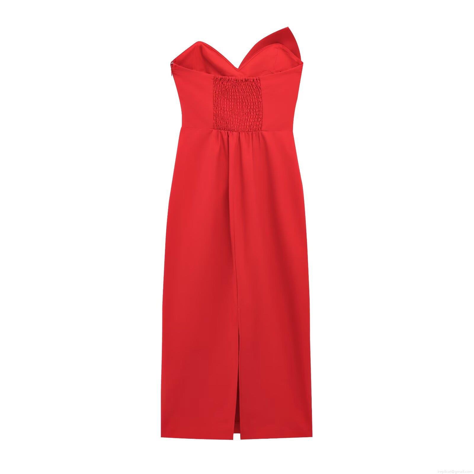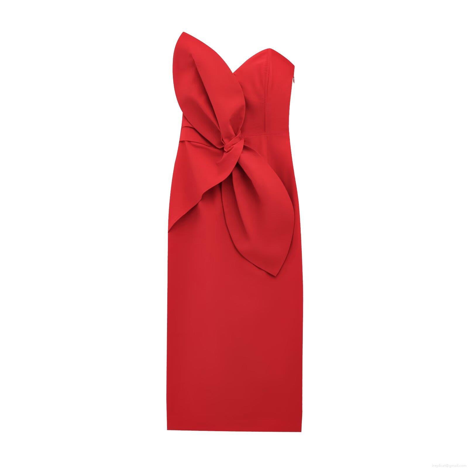 • Women's Elegant Strapless Bow Knot Ruched Midi Dress Polyester Cotton Blend Sexy Bodycon Back Slit Party Evening Cocktail Dress