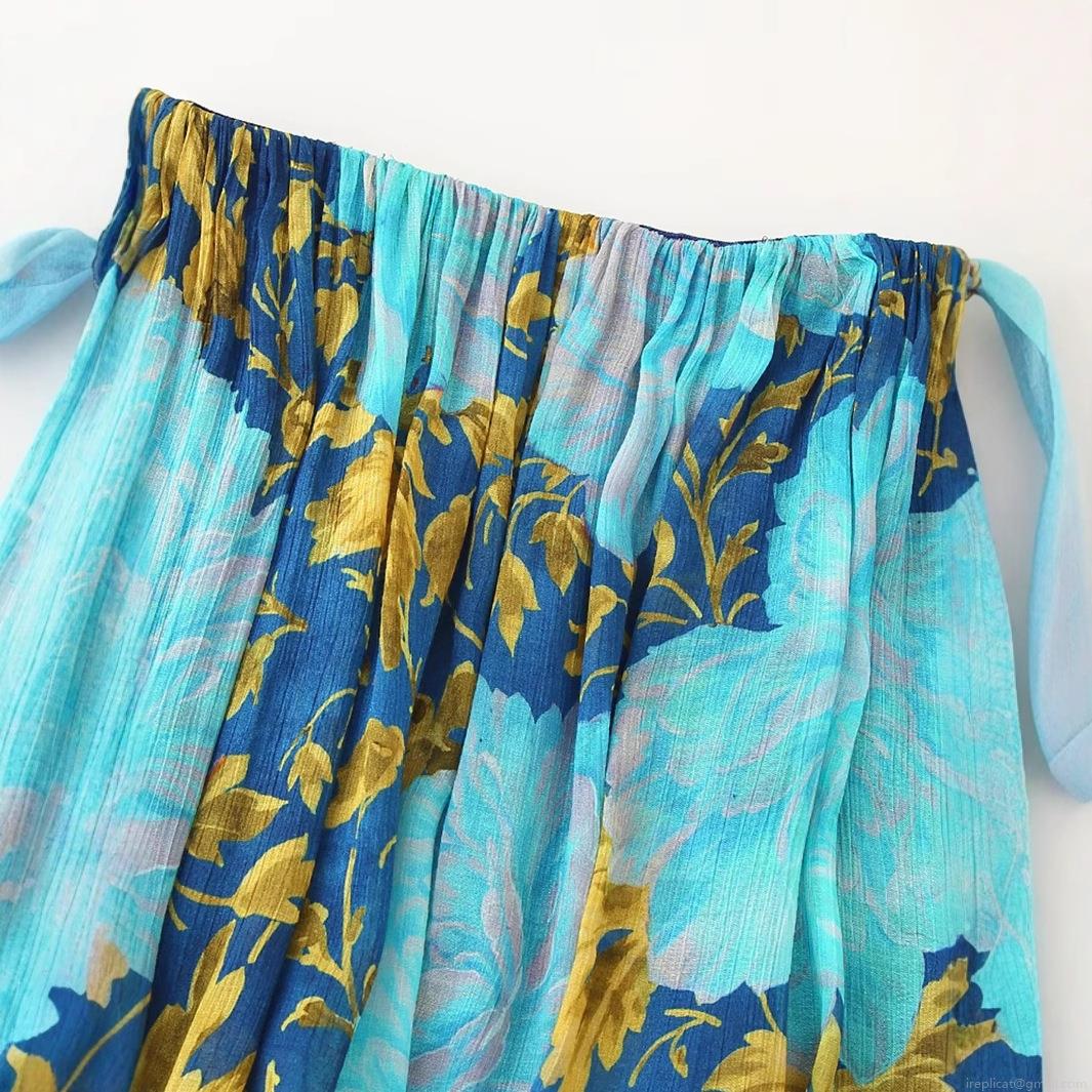 Floral Pattern, Pleats, Retro Floral, Strapless, Layered Structure, Multi-tiered Skirt