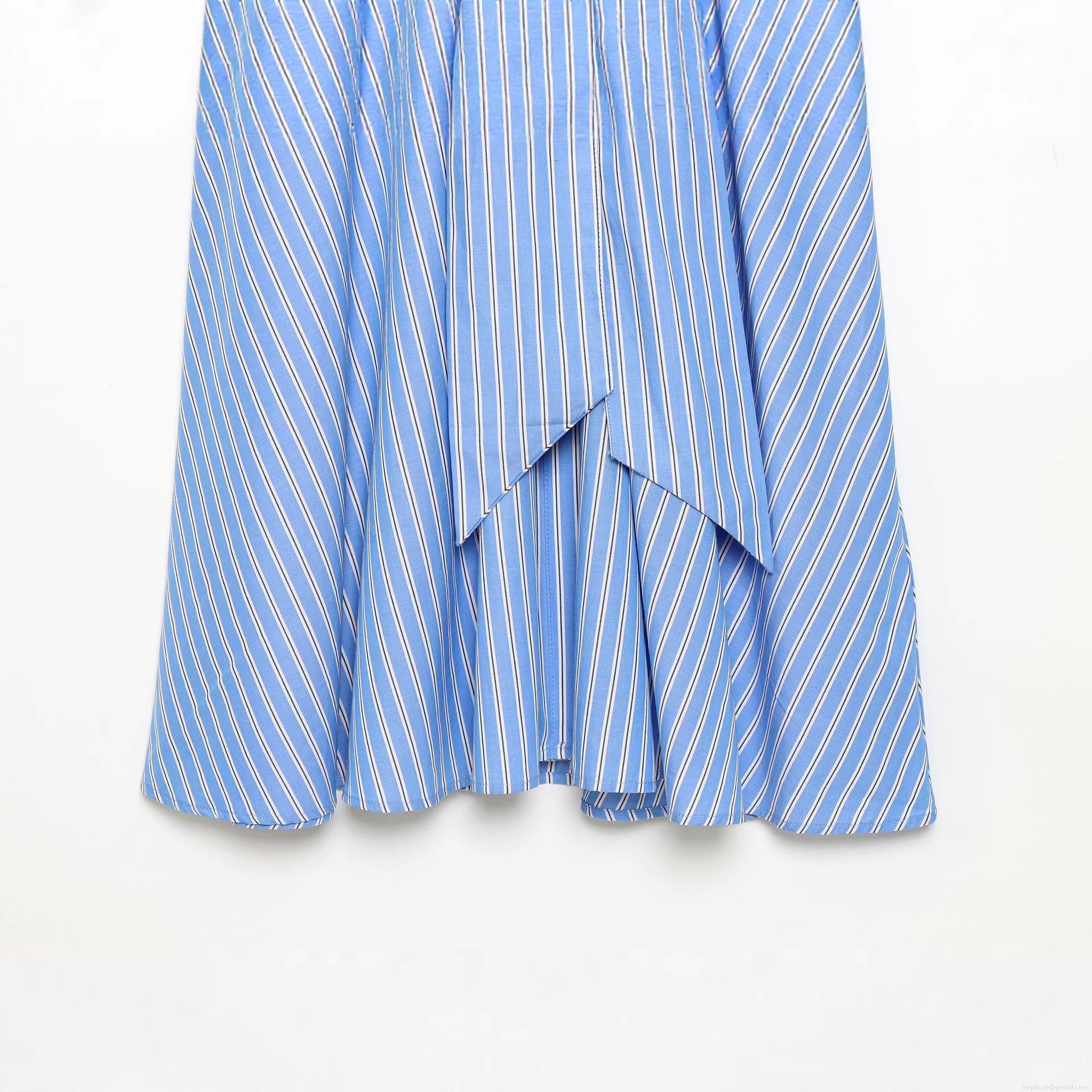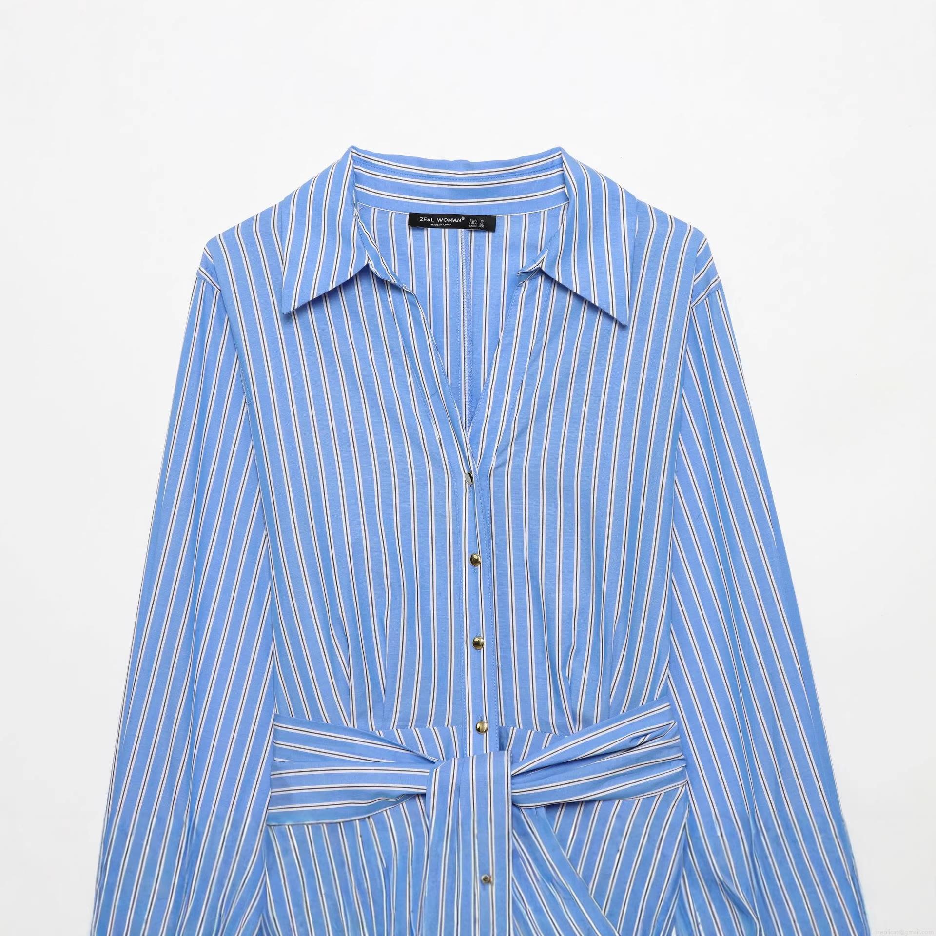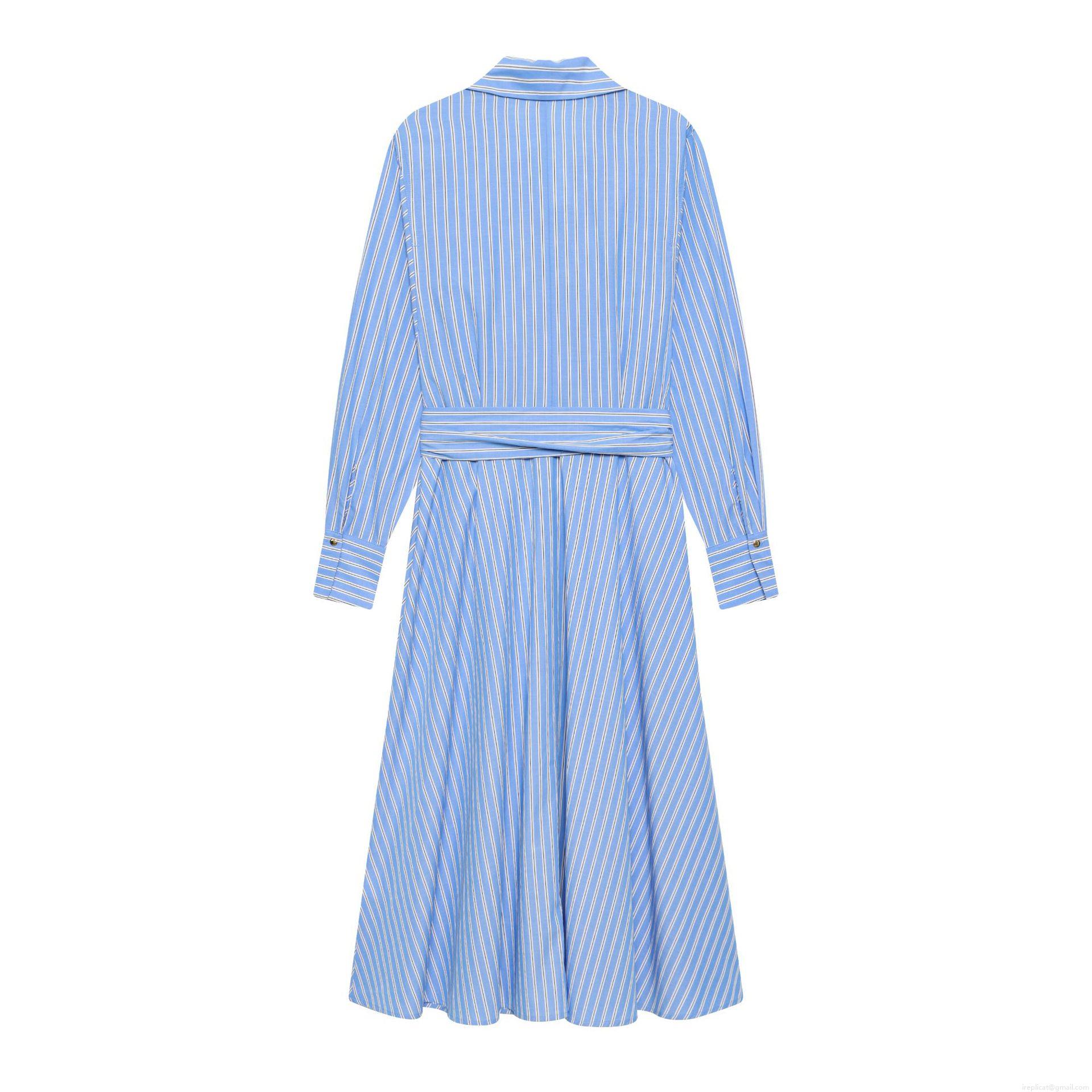 • Women's Elegant Striped Shirt Dress Long Sleeve Midi Dress With Belt For Daily Office Fashion Blue White Vertical Stripe Button Up Robe