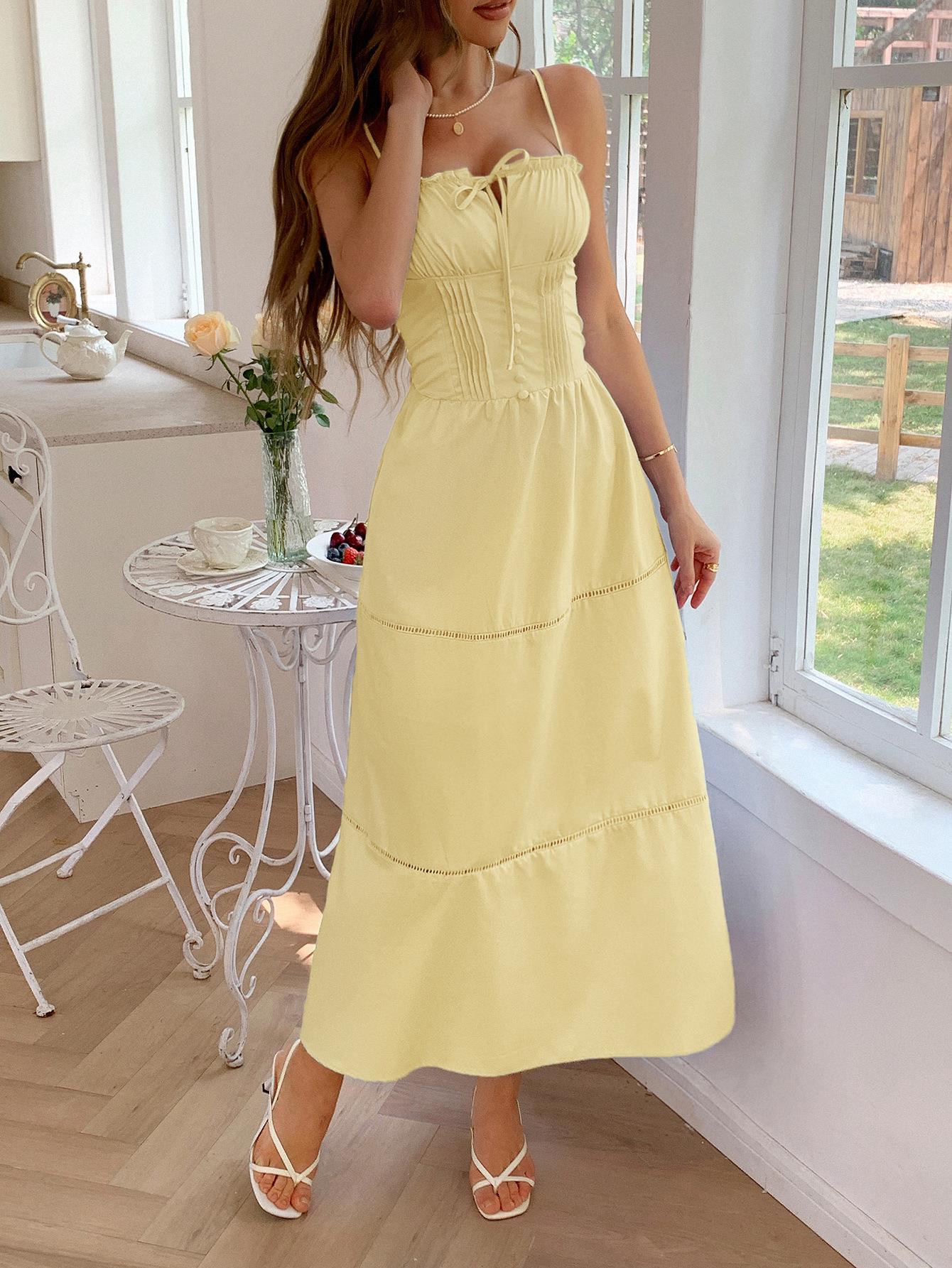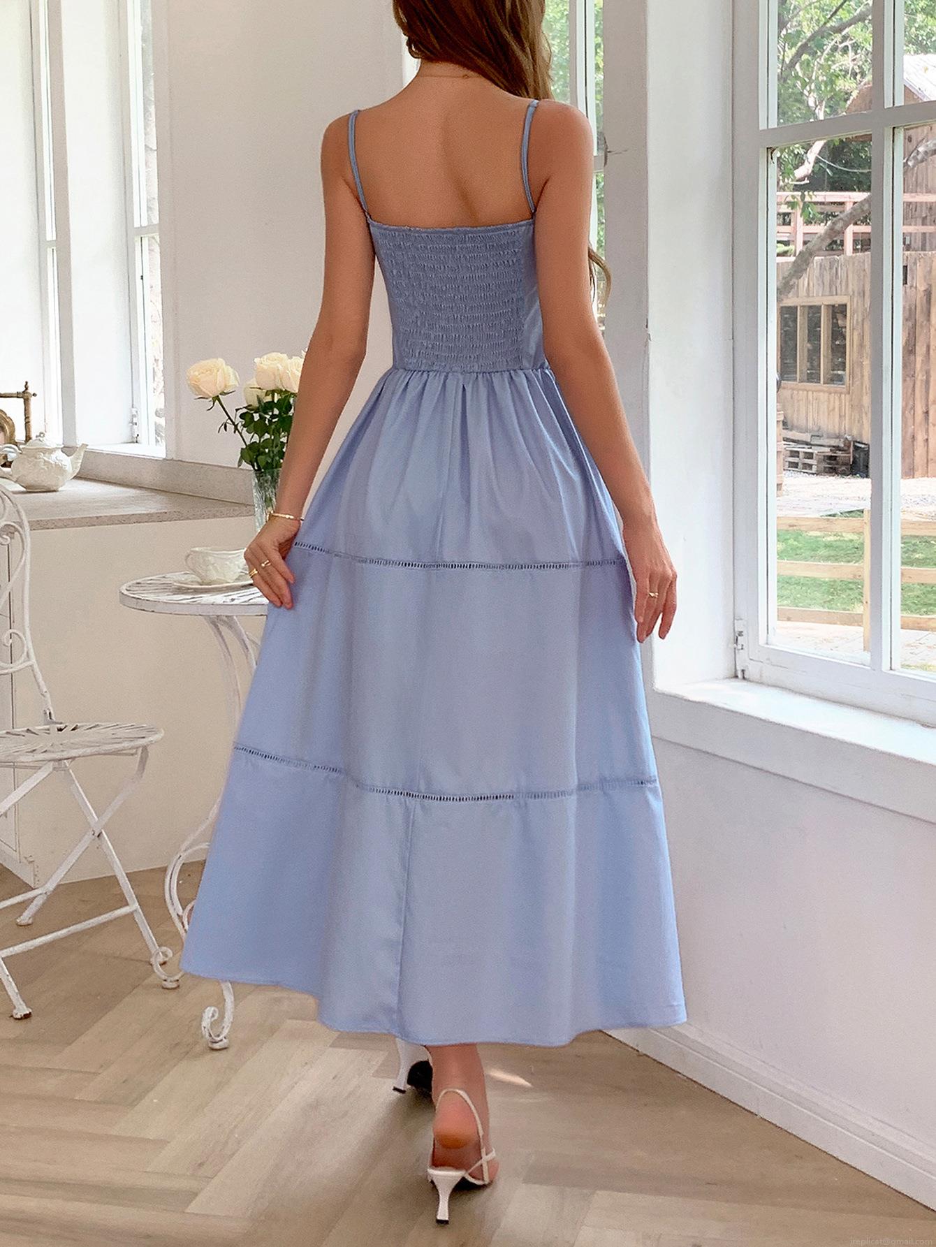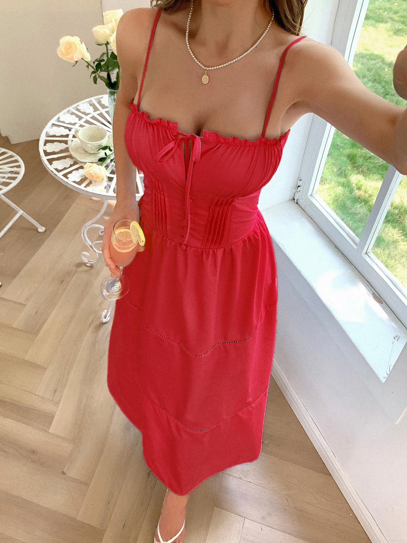 • Women's Elegant Summer Beach Vacation Camisole Dress Square Neck Tie-Up Tiered Cake Skirt Lace Trim Polyester Viscose Blend Midi Dress Romantic Style