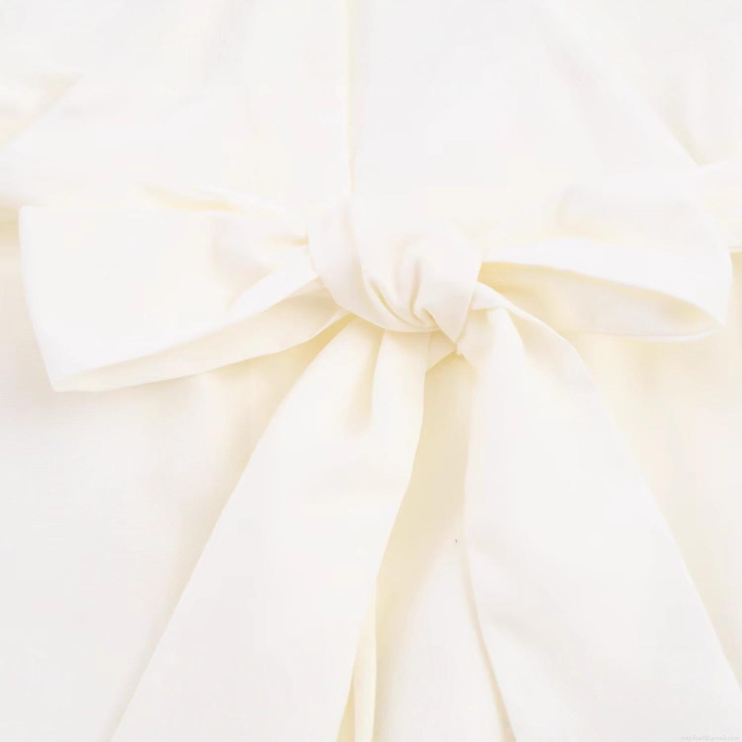 Solid Color, Bow, V-neck, Puff Sleeves, Single-breasted, Waist Tie