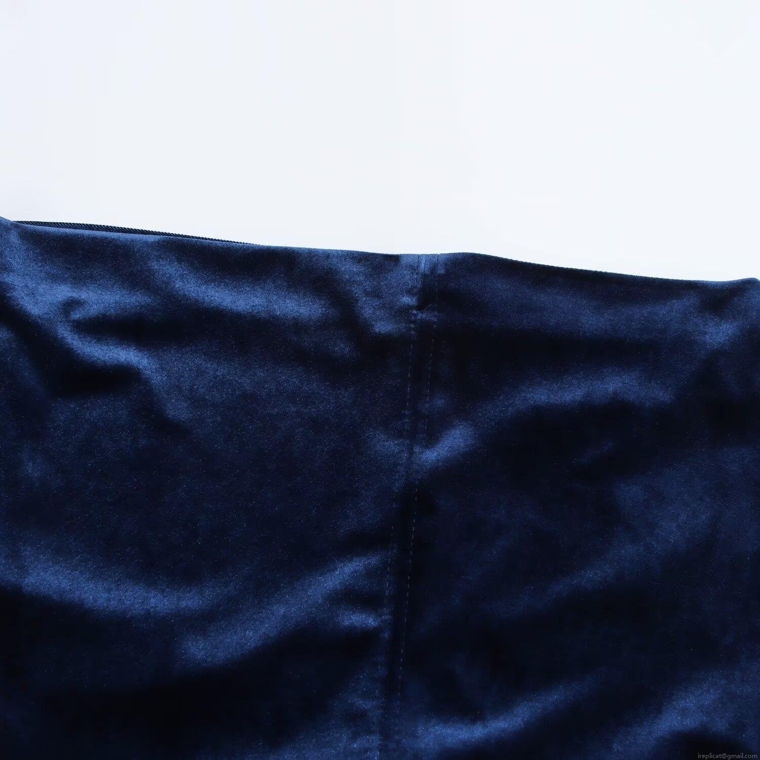 Women's Elegant Velvet Sleeveless One Shoulder Midi Dress Solid Navy Blue Slim Fit Party Club Evening Bodycon Splicing Dress