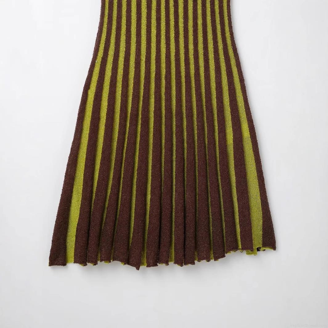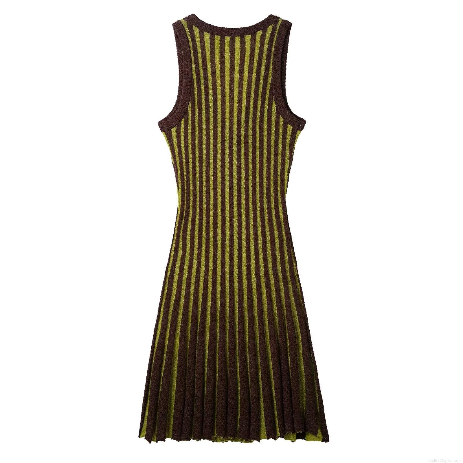• Women's Elegant Vertical Striped Sleeveless Knit Midi Dress V Neck Button Front Slim Fit Bodycon Ribbed Knit Retro Cocktail Party Dress