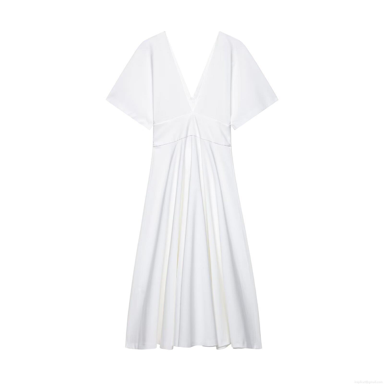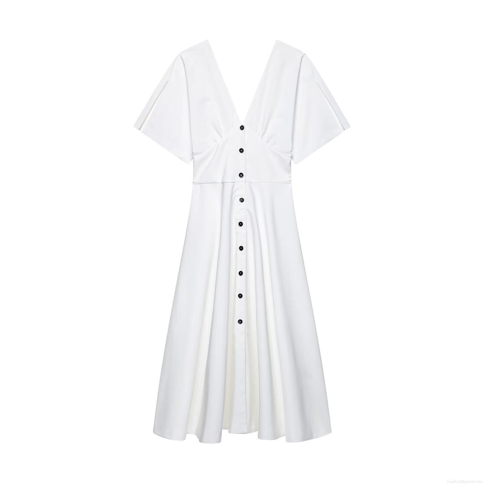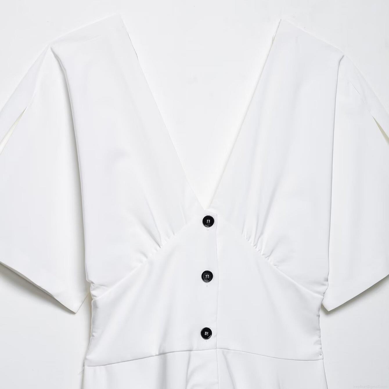 • Women's Elegant V-Neck Button Down Midi Dress Short Sleeve A-Line Solid Color High Waist Dress For Summer Casual Party Office
