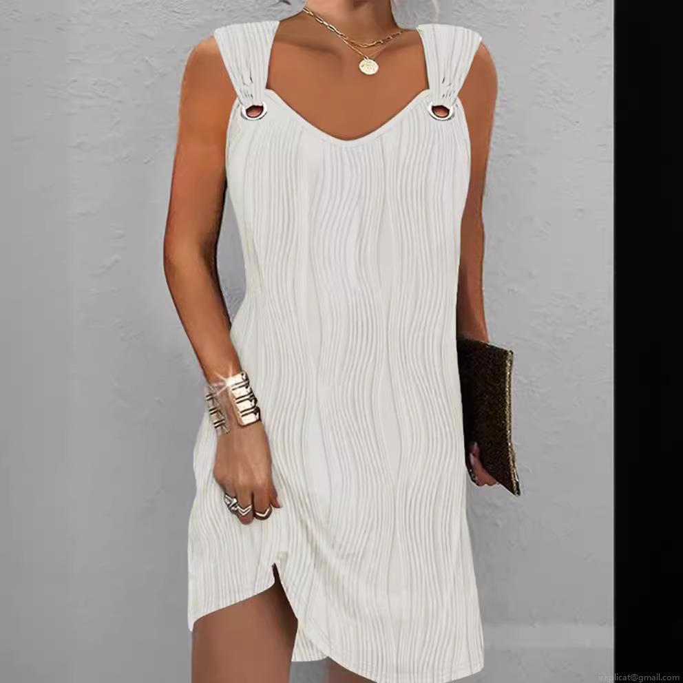 • Women's Elegant V-Neck Sleeveless Dress Modern Ripple Texture Pleated Bodycon Dress With Metal Ring Straps Slim Fit Summer Party Dating Dress